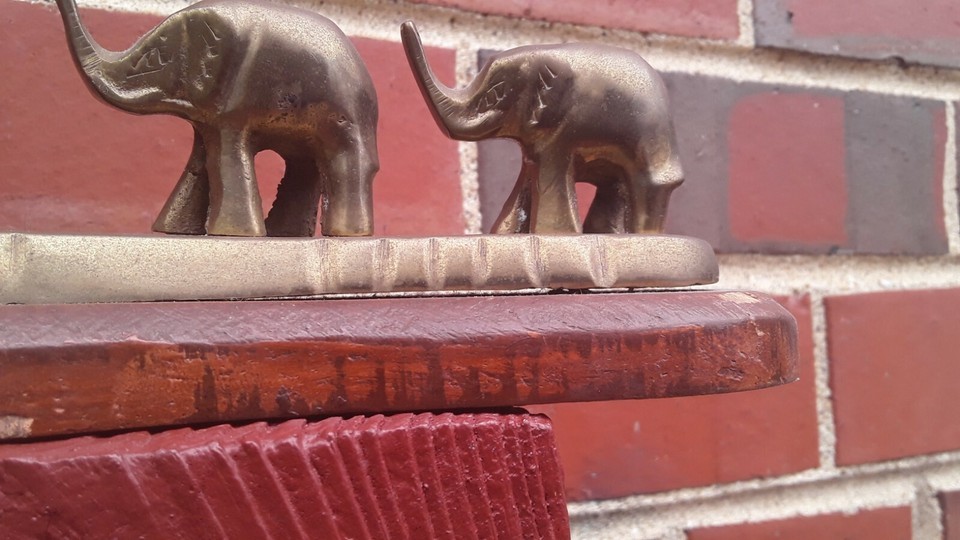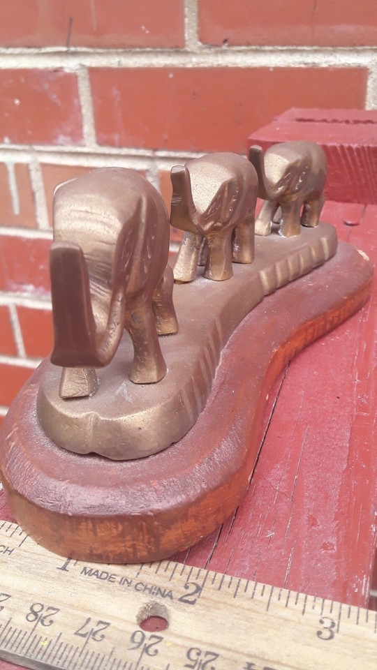 Vintage Brass Elephants on Wood Base Used and 45 similar items