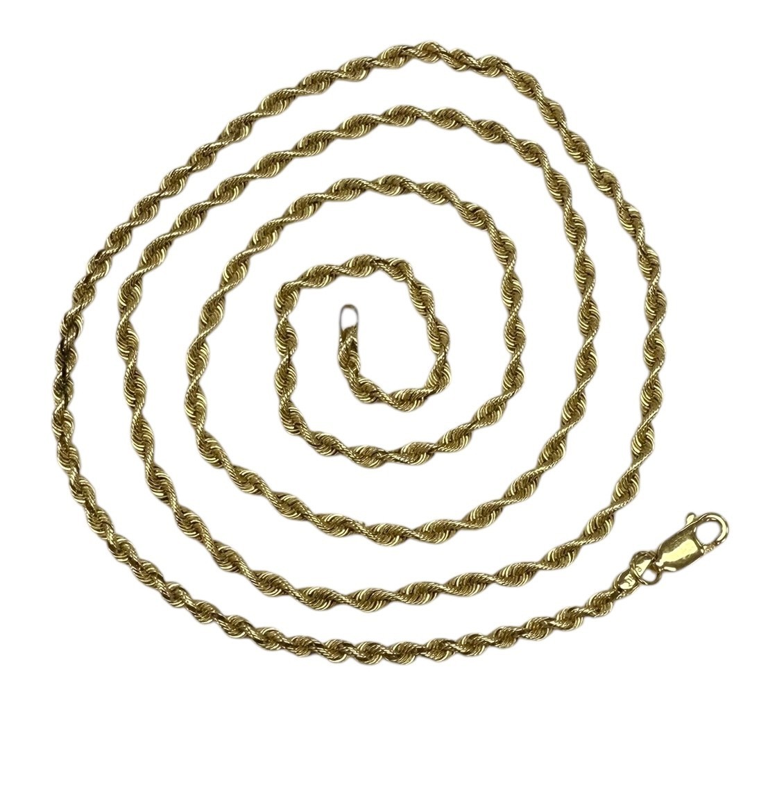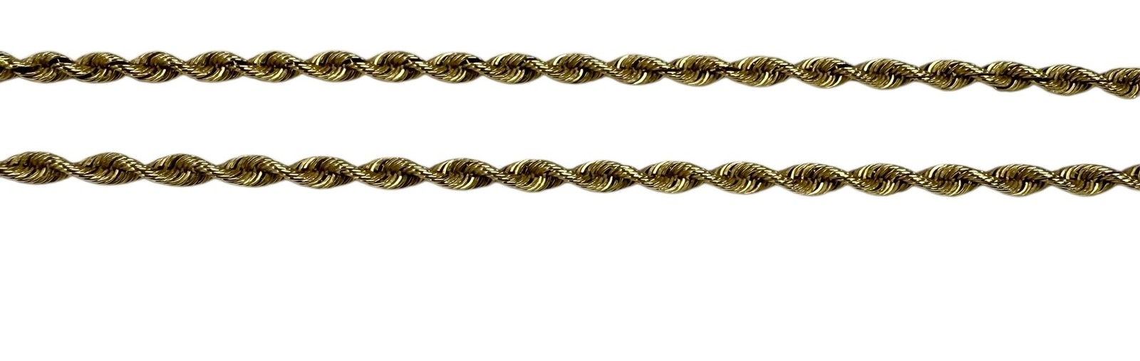 Type: NecklaceWeight: 6.1Karat: 14ktMetal: Yellow GoldGender: UnisexStyle: RopeSize / Length: 24"Owner applied: 14KCondition:Used
