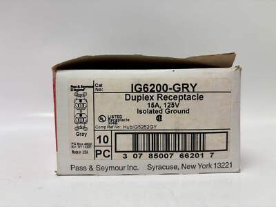 New 10 PK Legrand IG6200-GRY Isolated Ground Receptacle, 20A, 125V, Industrial, Gray New - Open Box The Legrand IG6200-GRY is a 20A, 125V isolated ground duplex receptacle, engineered to minimize electrical noise and interference in critical environments. Its gray color and NEMA 5-20R configuration make it suitable for industrial applications where clear circuit identification is essential. The receptacle features triple-wipe brass contacts for a secure connection and a corrosion-resistant steel mounting strap for added durability. Designed for flexibility, it supports both back and side wiring with #14?10 AWG copper or copper-clad wire, accommodating various installation preferences. Listed by: Vienna (Sales Team) ?Work hard in silence, let your success be your noise.? ? Frank Ocean (A positive moment brought to you by Help Resale) About Us Welcome to Help Resale, your go-to consignment shop where value meets quality. At Help Resale, we're dedicated to providing you with an exceptional shopping experience, whether you're looking to find the best deals or consign your items. Need to buy a product, but don't see it in our store? Please feel free to reach out to us and we will help you find it! Help Resale 7200 Fair Oaks Blvd Suite 120 Carmichael CA 95608 Business Hours: Monday-Friday: 9:00 am to 5:00 pm (PST) All product and company names are trademarks TM or registered trademarks of their respective holders. Use of them does not imply any affiliation with or endorsement by them.