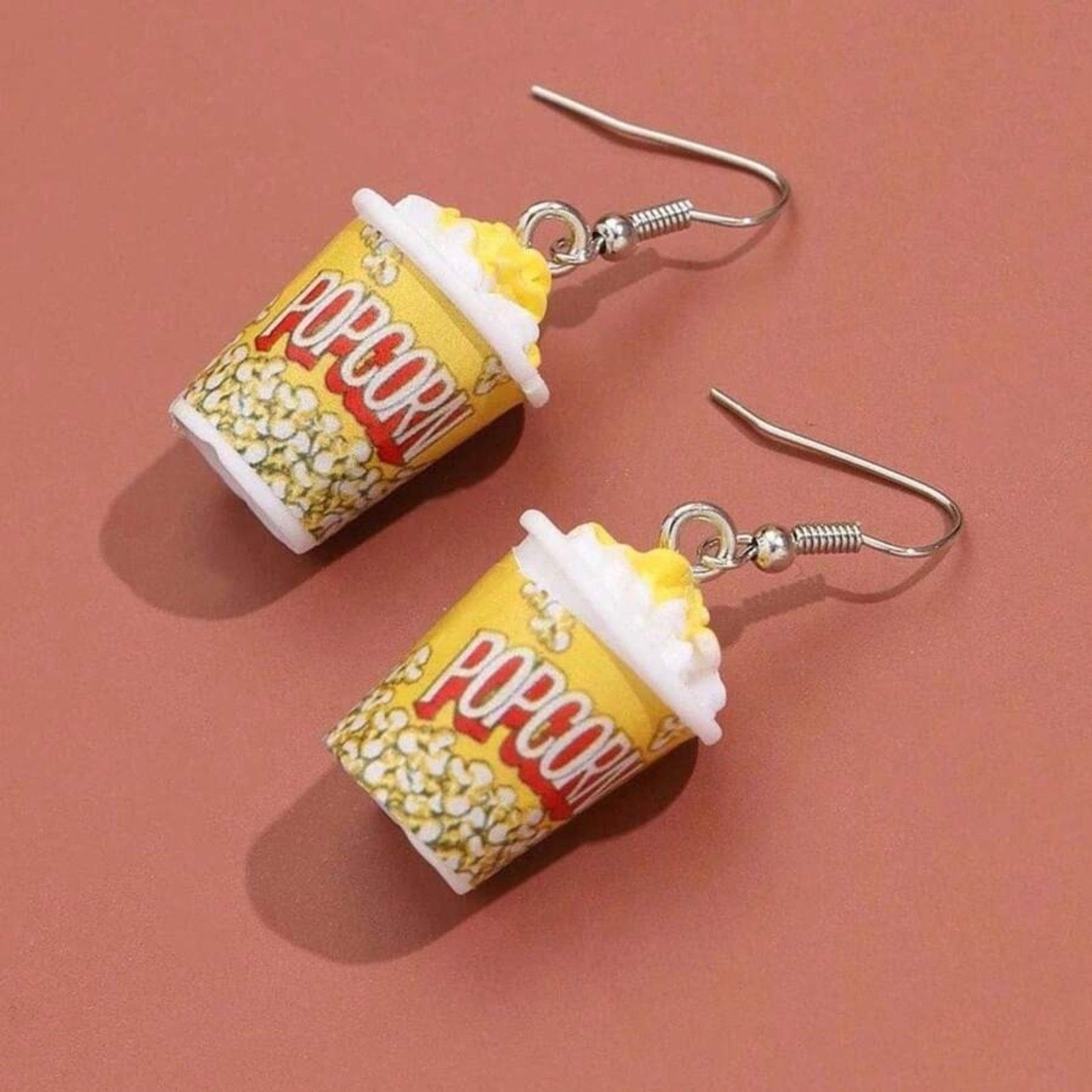 Movie Theater Popcorn Bucket Dangle Earrings โ Fun Novelty Food Jewelry