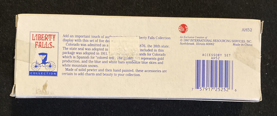 Liberty Falls 1997 Miniature Accessory Set Solid Pewter Hand Painted AH52 NOS. Shipped with USPS First Class.