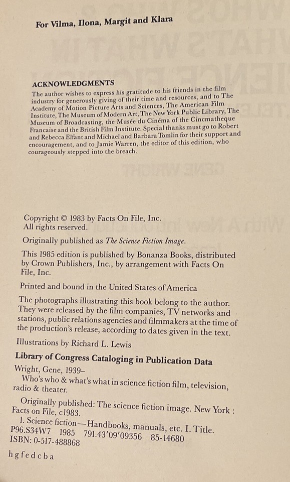 Who's Who What's What In Science Fiction Film, Television, Radio Theater.
