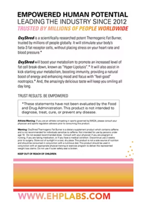OxyShred Ultra is an advanced, potent thermogenic fat burner designed to stimulate fat receptor cells and accelerate metabolism for increased fat burning. It also helps curb appetite, limit calorie absorption, boost immunity, and provide a natural energy boost.