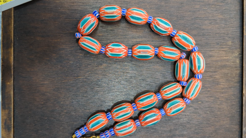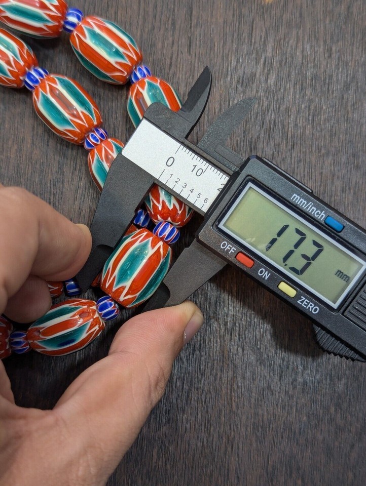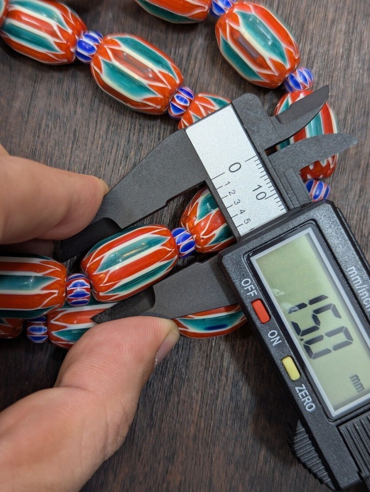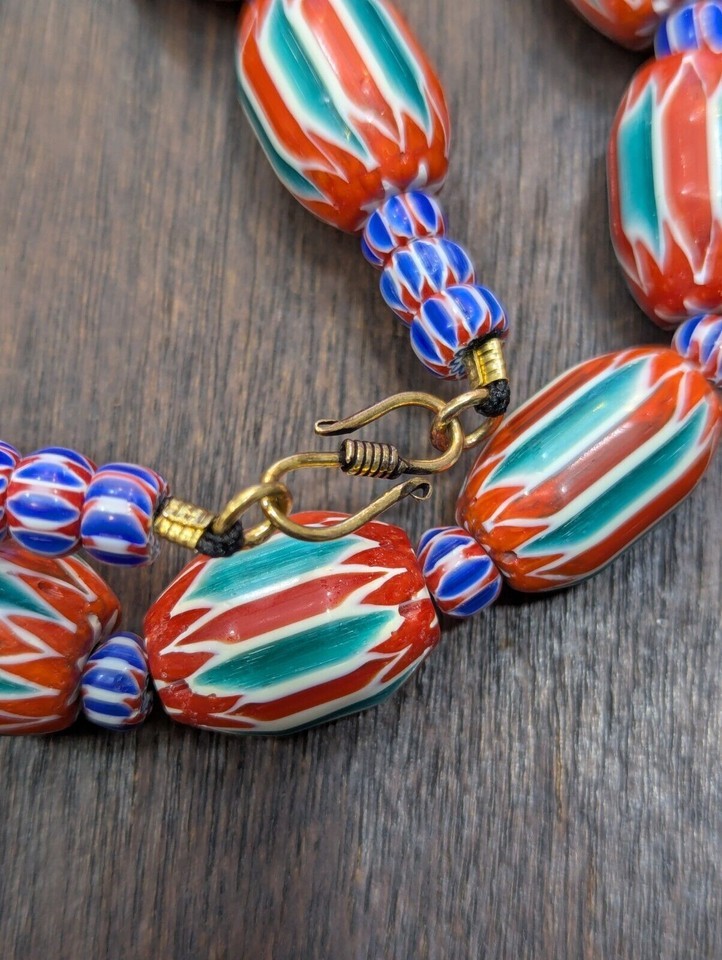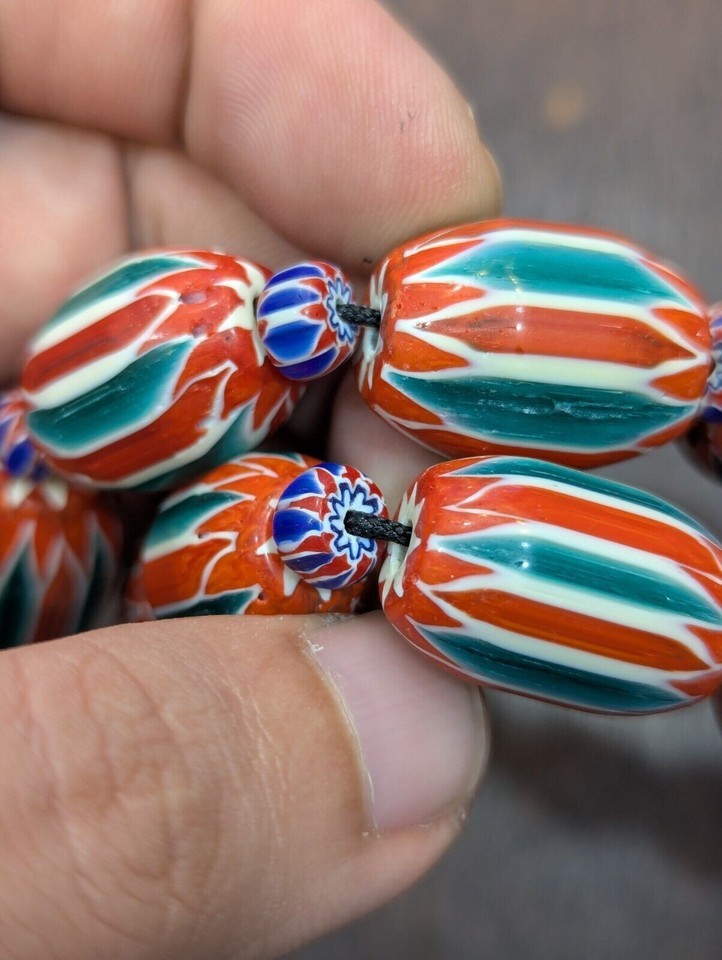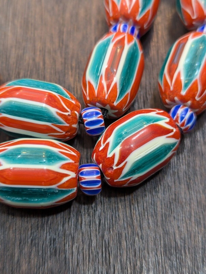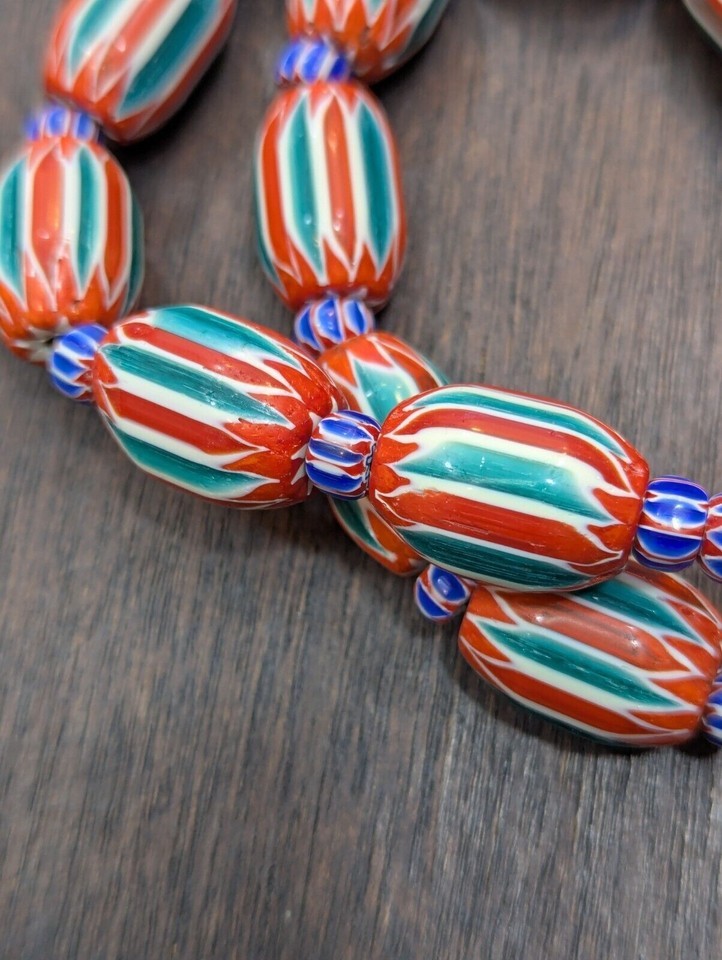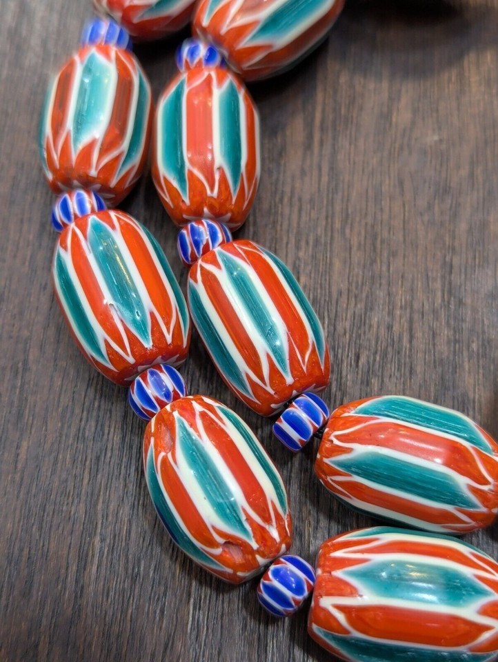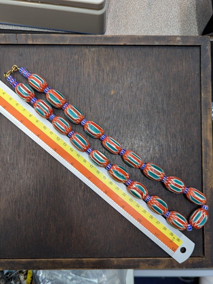 Big size Venetian Style Old green Red Chevron Glass Beads Long Strand