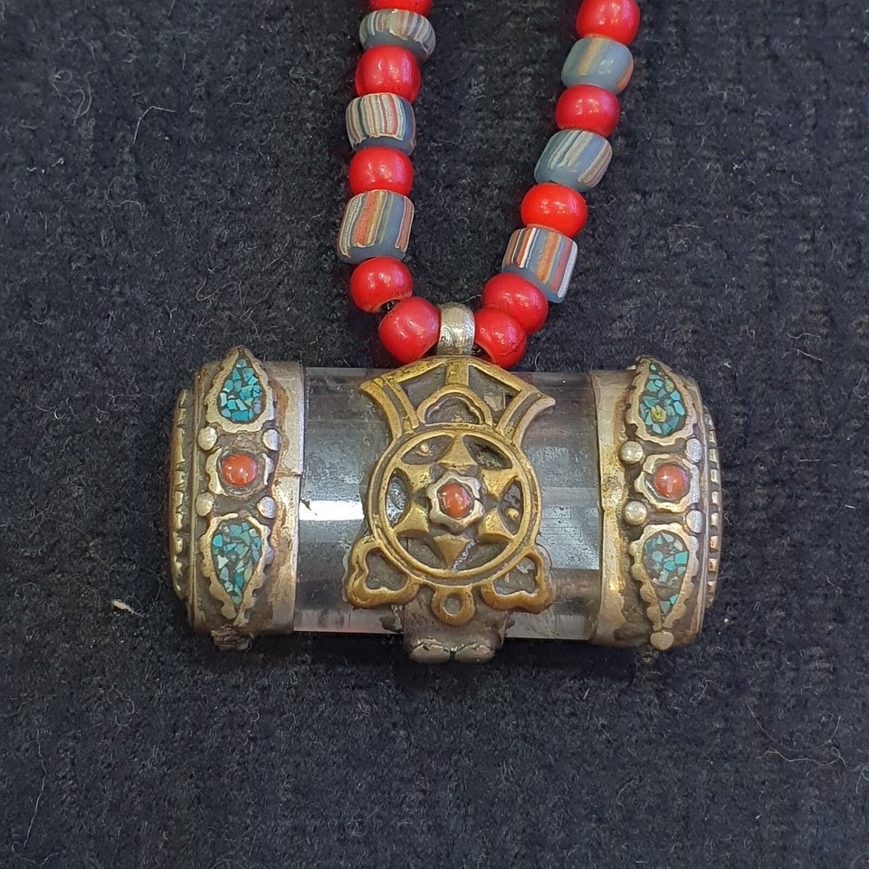 Beautiful Nepalese Quartz Stone pendent with Glass beads Jewelry Necklace
