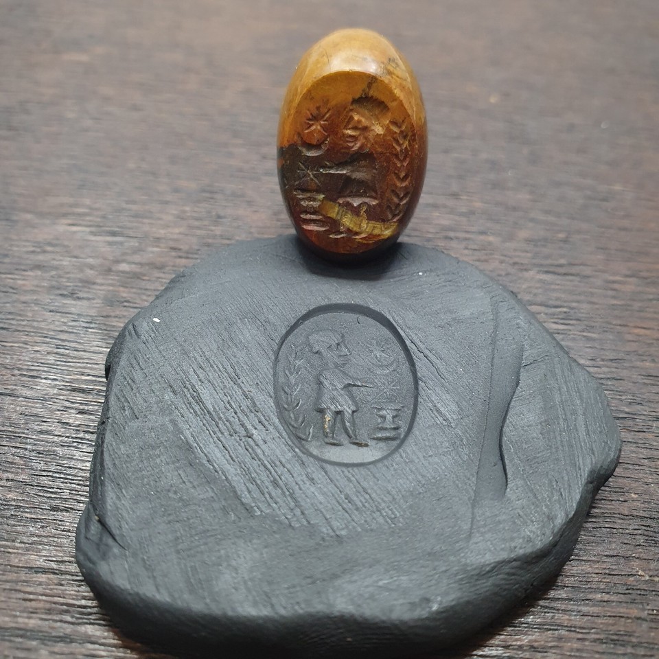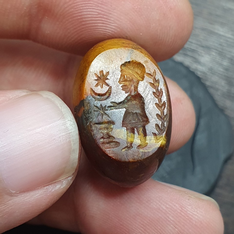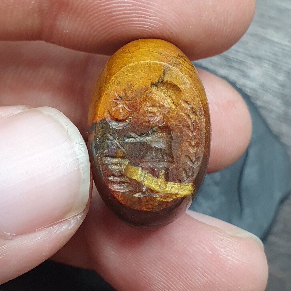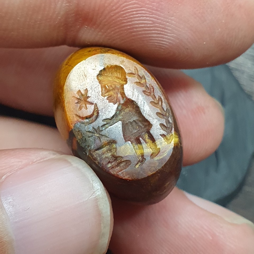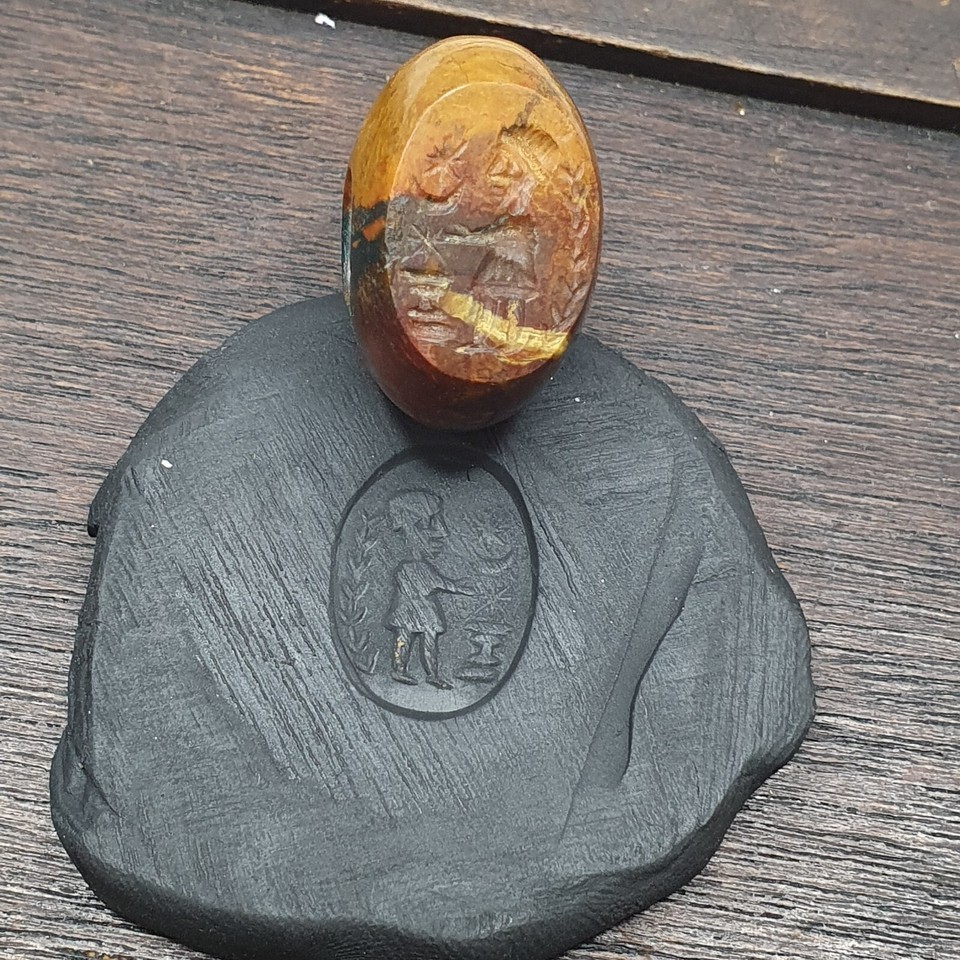 Ancien pendentif en taille-douce en jaspe SEAL perle roi très rare
