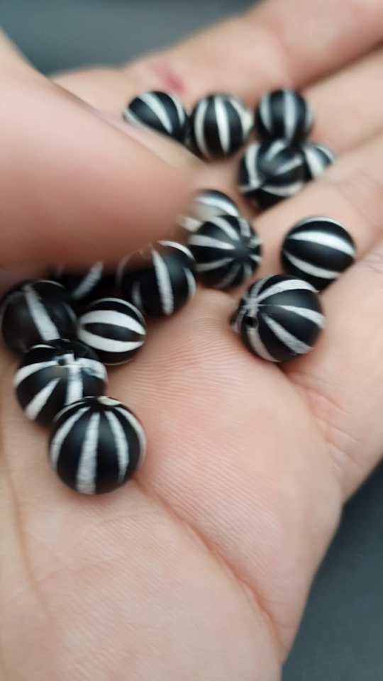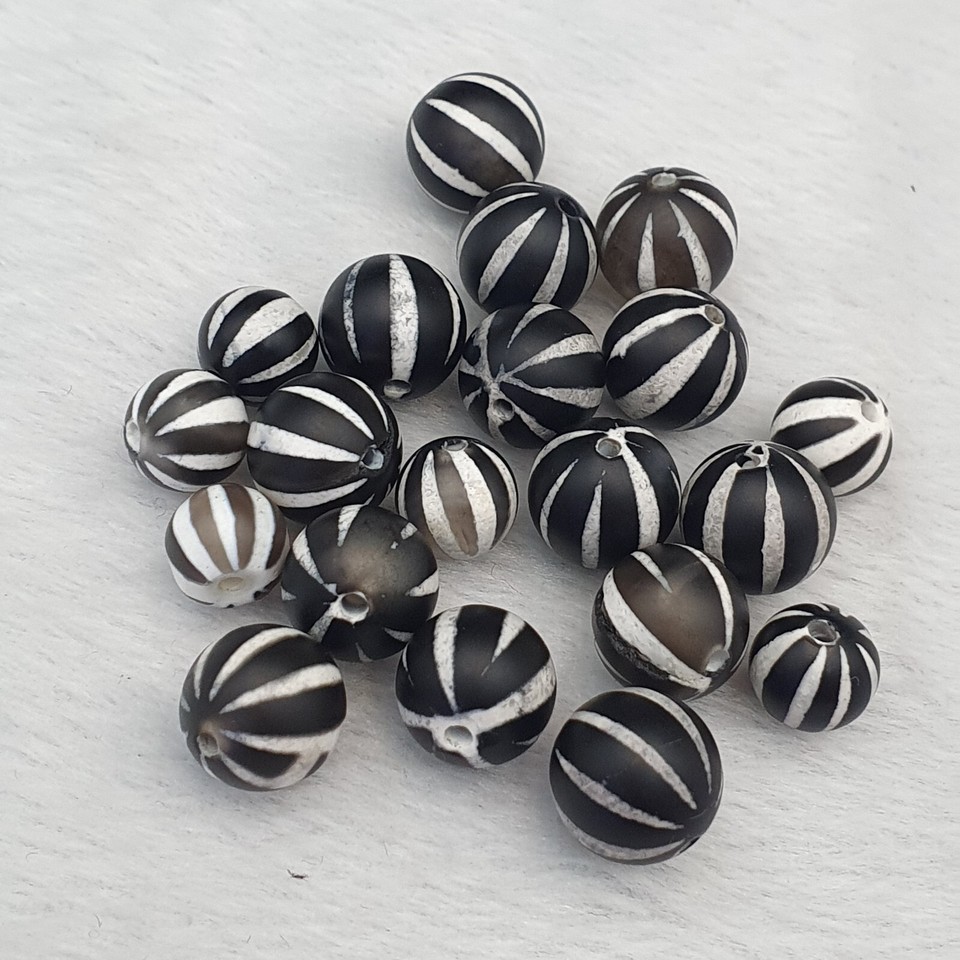 Lot 20 perles d'agate gravées tibétaines INDO Himalaya décorées