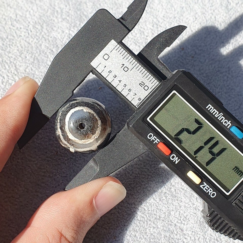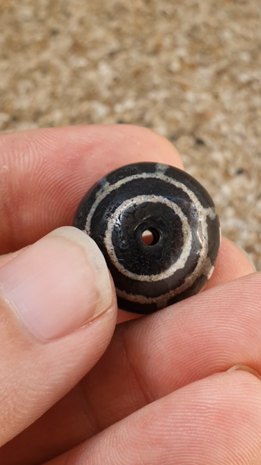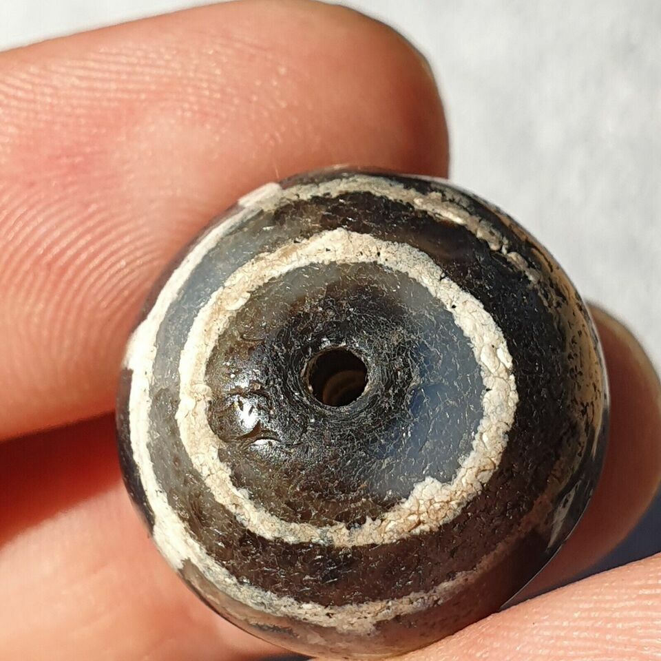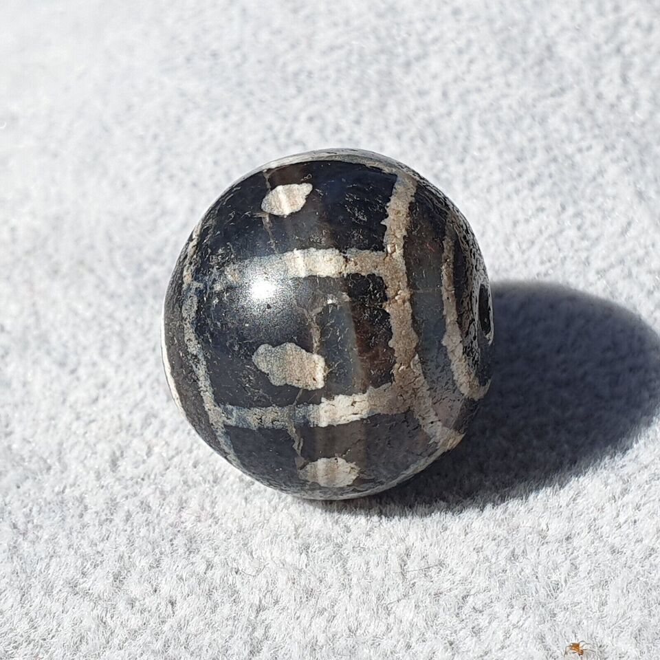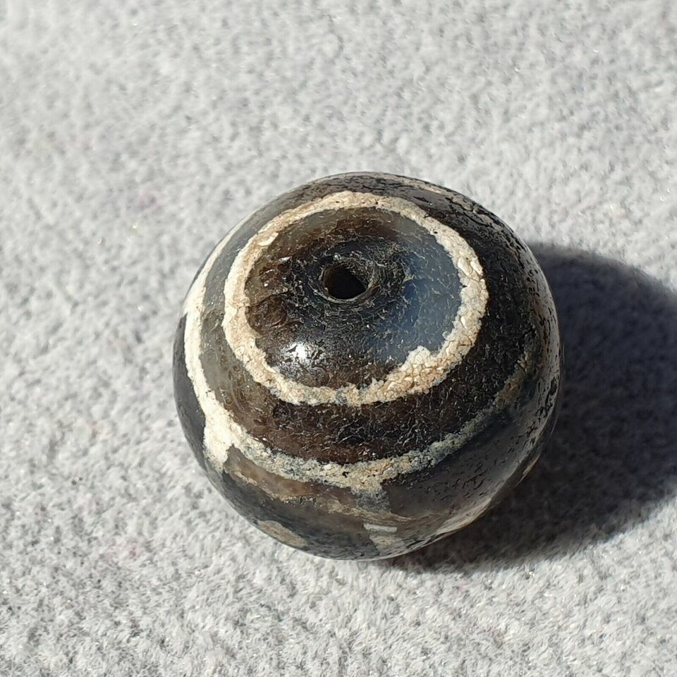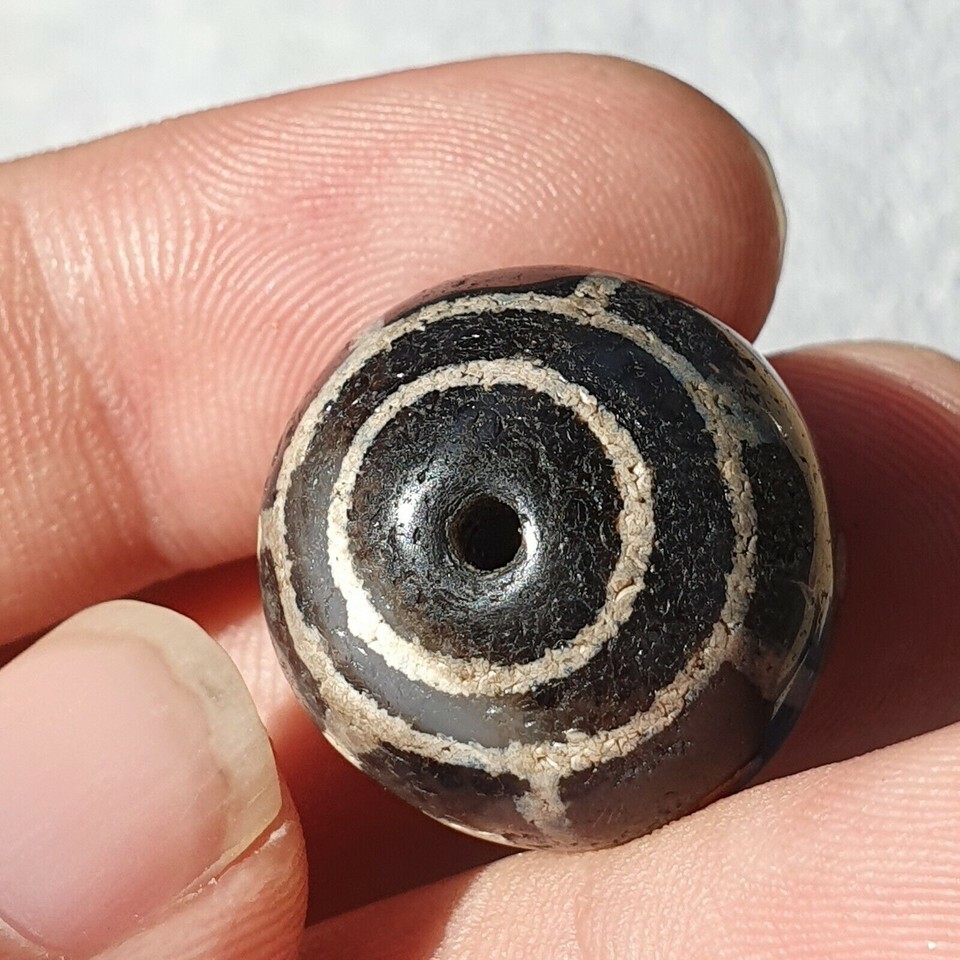 Ancienne amulette tibétaine gravée en agate grise motif yeux perles SHDK-6