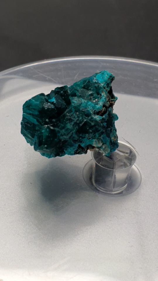 Ce specimen de cristal exquis est un superbe exemple de la beaute trouvee dans la nature. Les cristaux verts de dioptase sont vraiment uniques, et chacun est un veritable tresor. Le specimen provient du Congo, et il est clair qu'il a ete soigne avec une grande attention aux details.