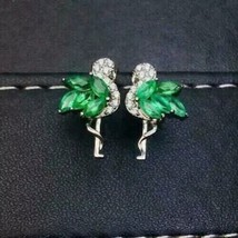 2Ct Marquise Cut Lab Created Green Emerald Flamingo Earring 14K WhiteGold Plated
