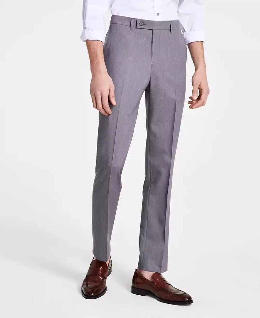 DKNY Dario Dress Pants Men's 38x32 Grey Modern-Fit Solid Stretch Flat Front