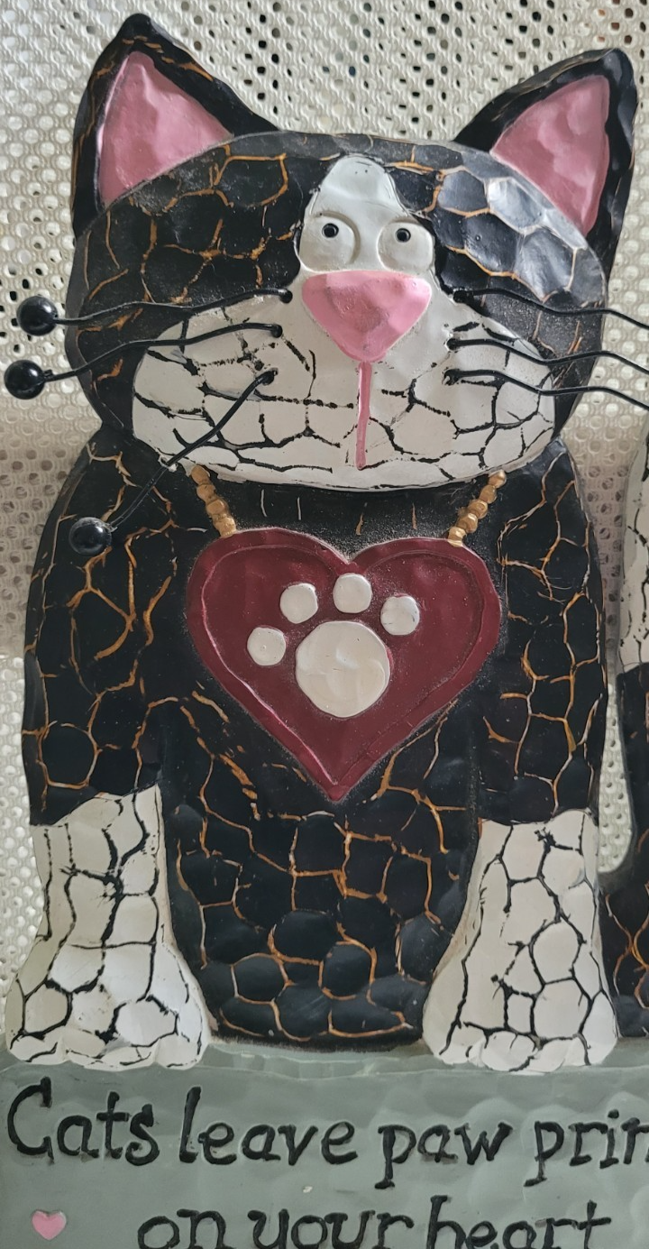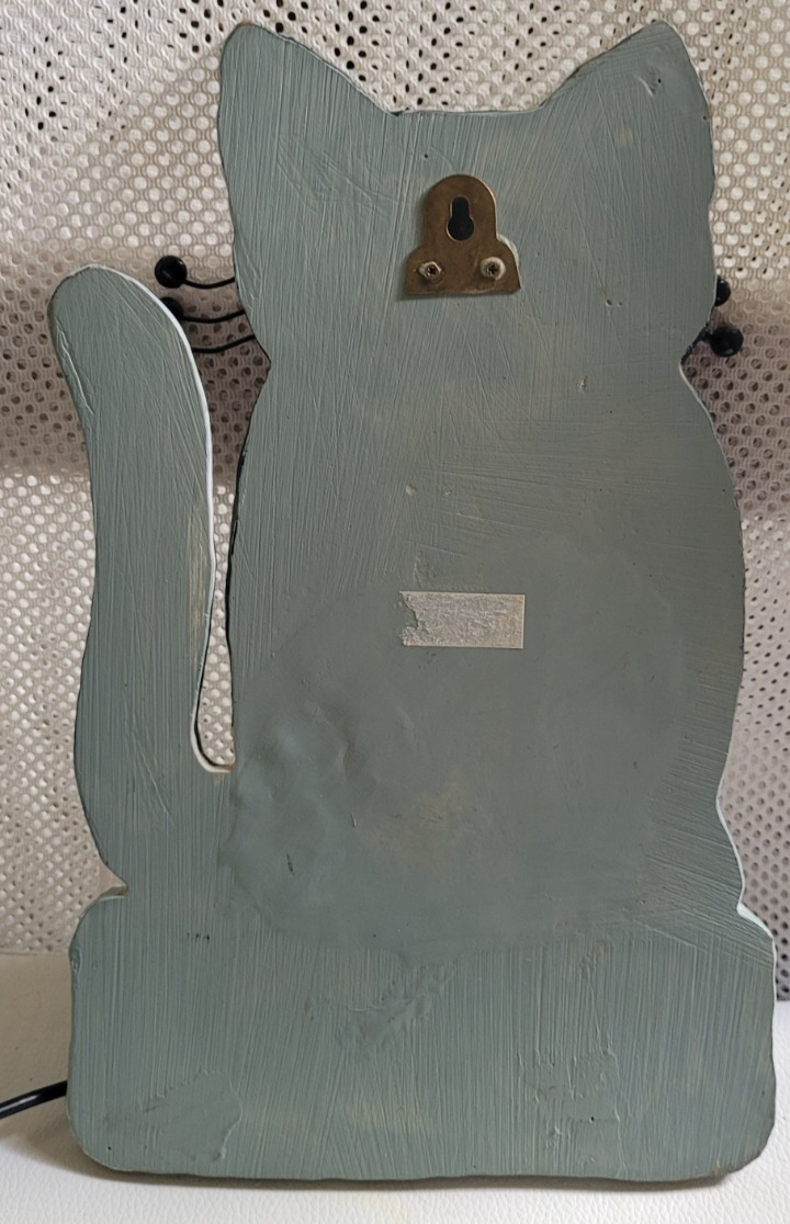 This wall plaque is in good used condition. There is a loose whisker, as seen in the photos. There are no chips or cracks that I found. It measures approximately: 10.75 inches tall. 6.75 inches wide. It would make a nice addition to a room or for a gift.