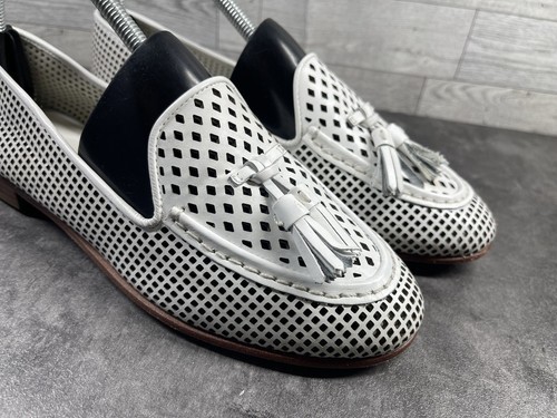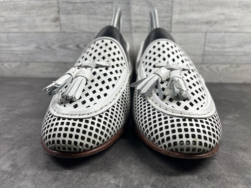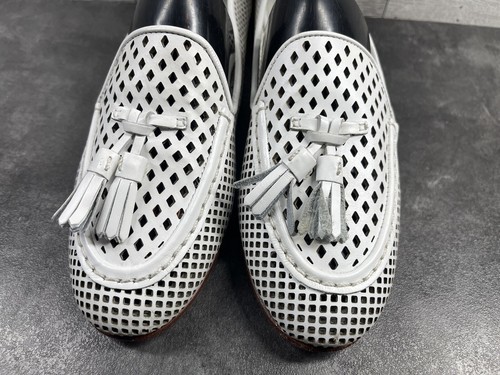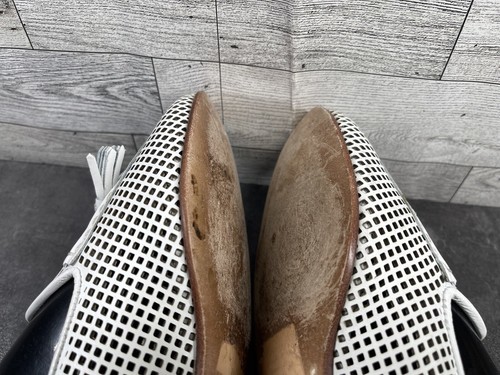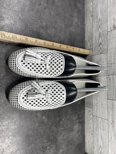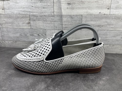 Antonio Melani Loafers Women 8M Saddie Shoe White Perforated Leather Tassel Flat