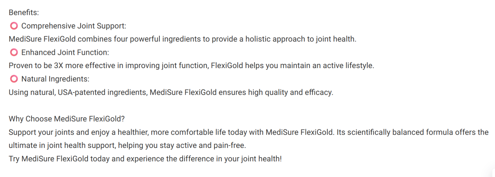 - Regeneration of cartilage tissue, lasting effect and safety, more benign than conventional products.