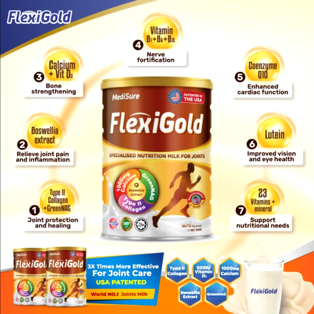 FlexiGold Milk - Knee Pain Back Pain (800g) Back Pain Strengthen Bones
