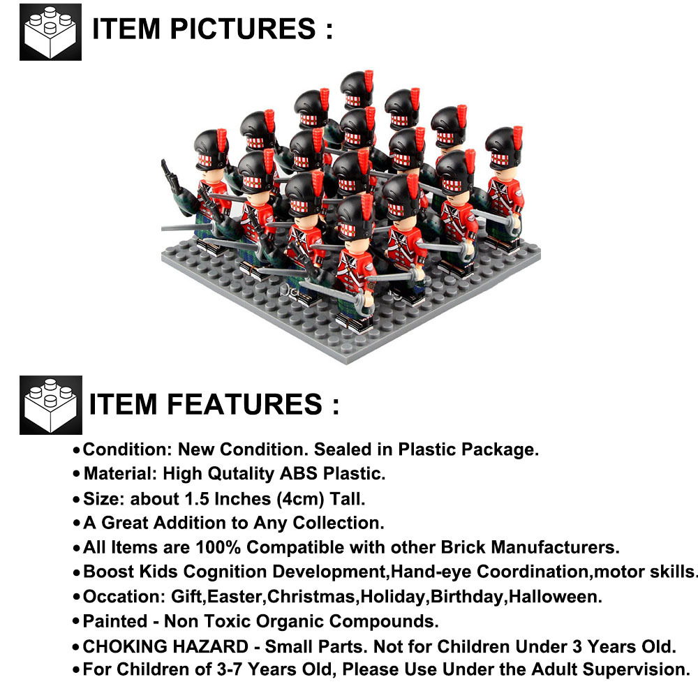 16pcs Scottish Bagpiper Army Napoleonic Wars Minifigure Set