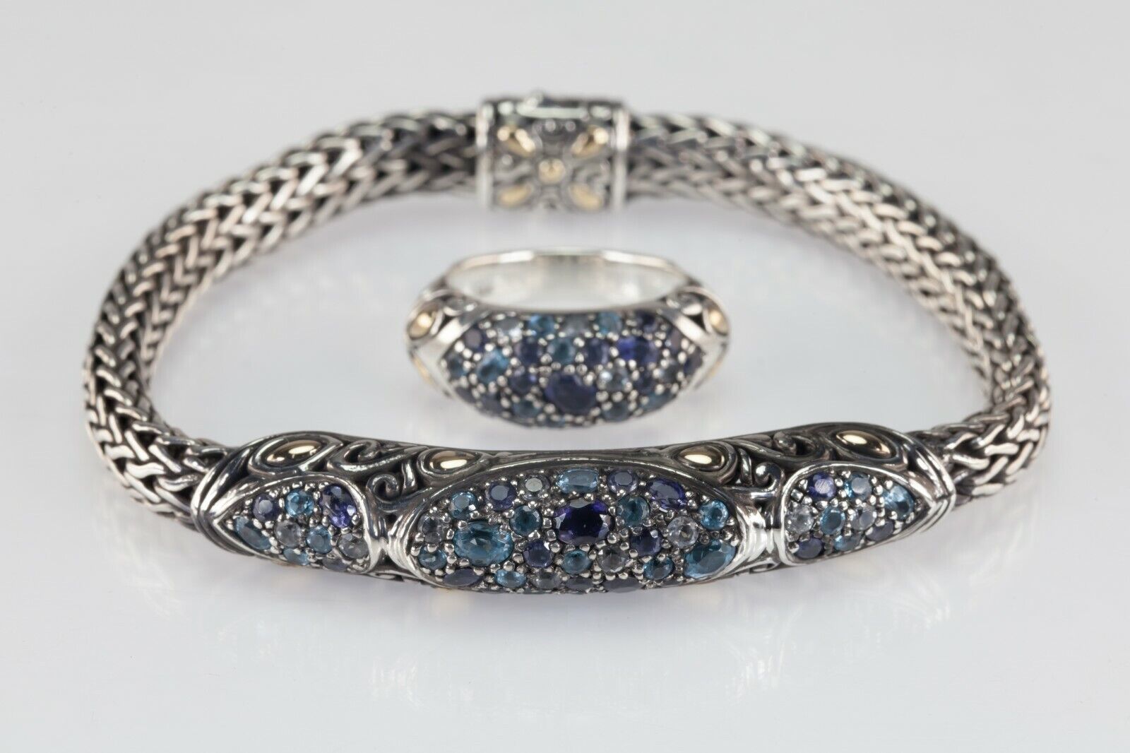 John Hardy Sterling Silver and 18k Yellow Gold Cobblestone Bracelet and Ring Set