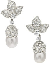 Gorgeous South Sea Pearl Diamond Earrings Set in Platinum