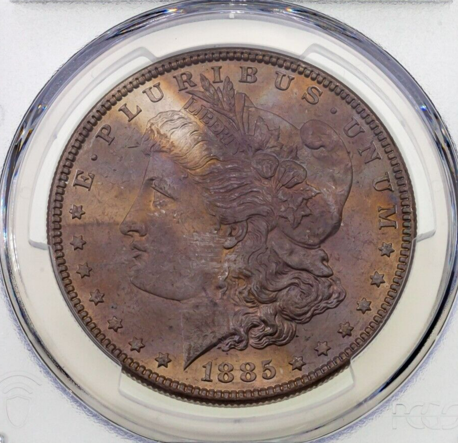 1885 Silver Morgan Dollar Graded by PCGS as MS-64 Nice Toning