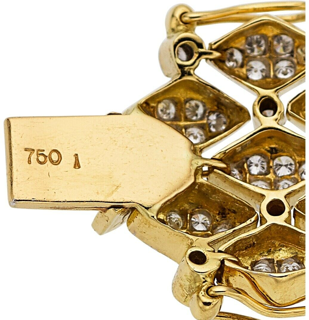 Stunning 18k Yellow Gold 6.95 ct Full-cut Diamond Plaque Bracelet Rhodium Finish 56.50g