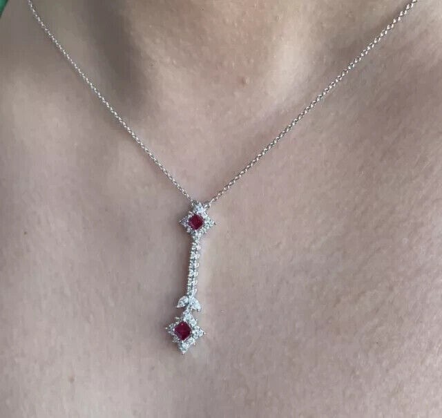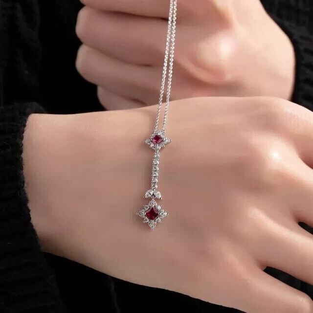 1Ct Princess Cut Lab Created Ruby Women's Beauty Pendant 14K White Gold Plated