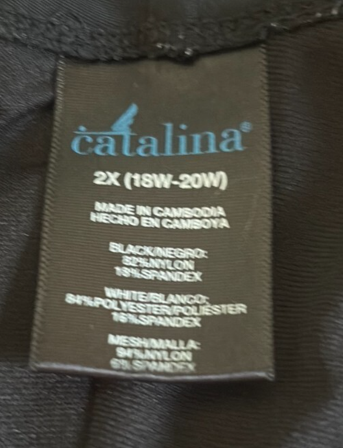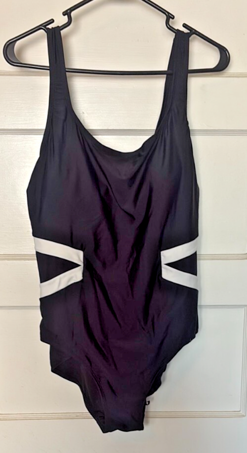 Catalina Women's Black and White One Piece Swimsuit Size 2X. Elegant black one-piece with white accents. Classic design. Comfortable fit. 82% Nylon 18% Spandex. Very Good Condition. - See photos for further description.
