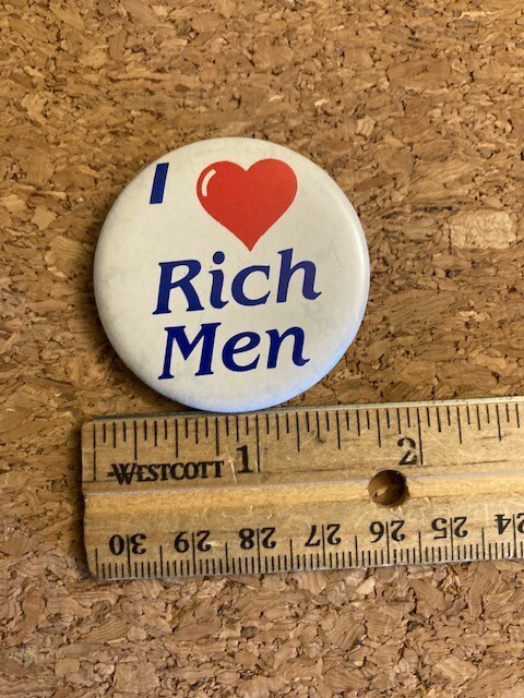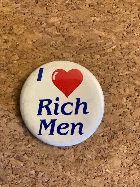 Vintage I Love Rich Men Pinback Pin Badge. Land your dream man!!!