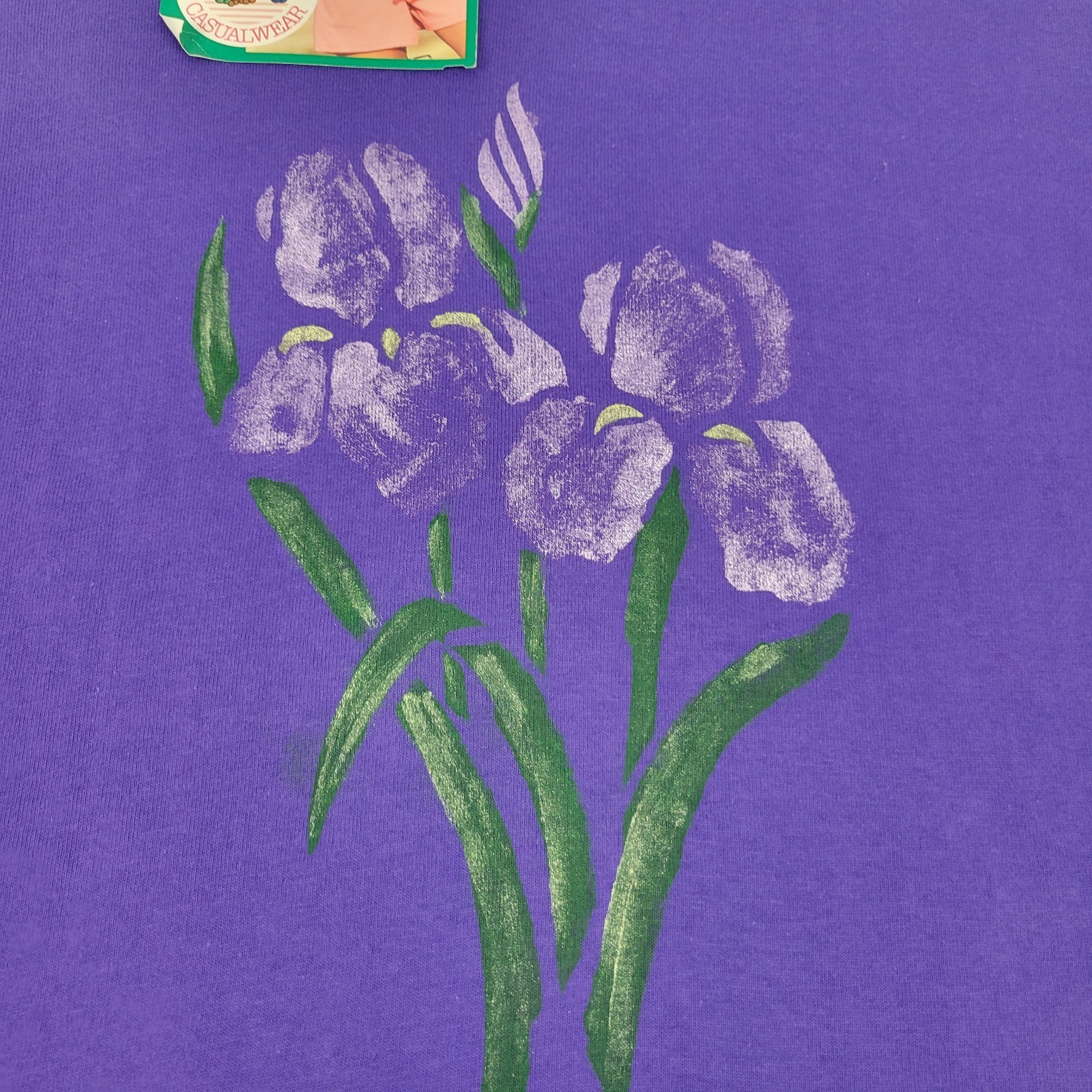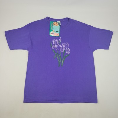 Vintage Fruit Of The Loom Ladies Large Purple T-Shirt Made In USA Floral