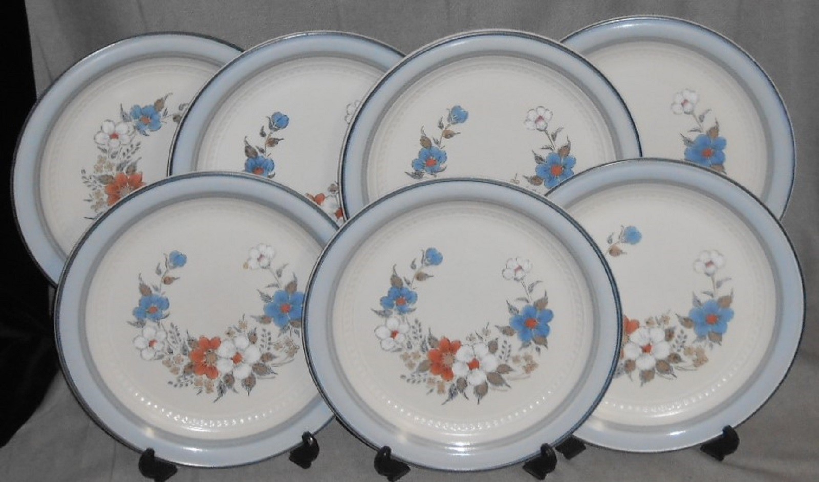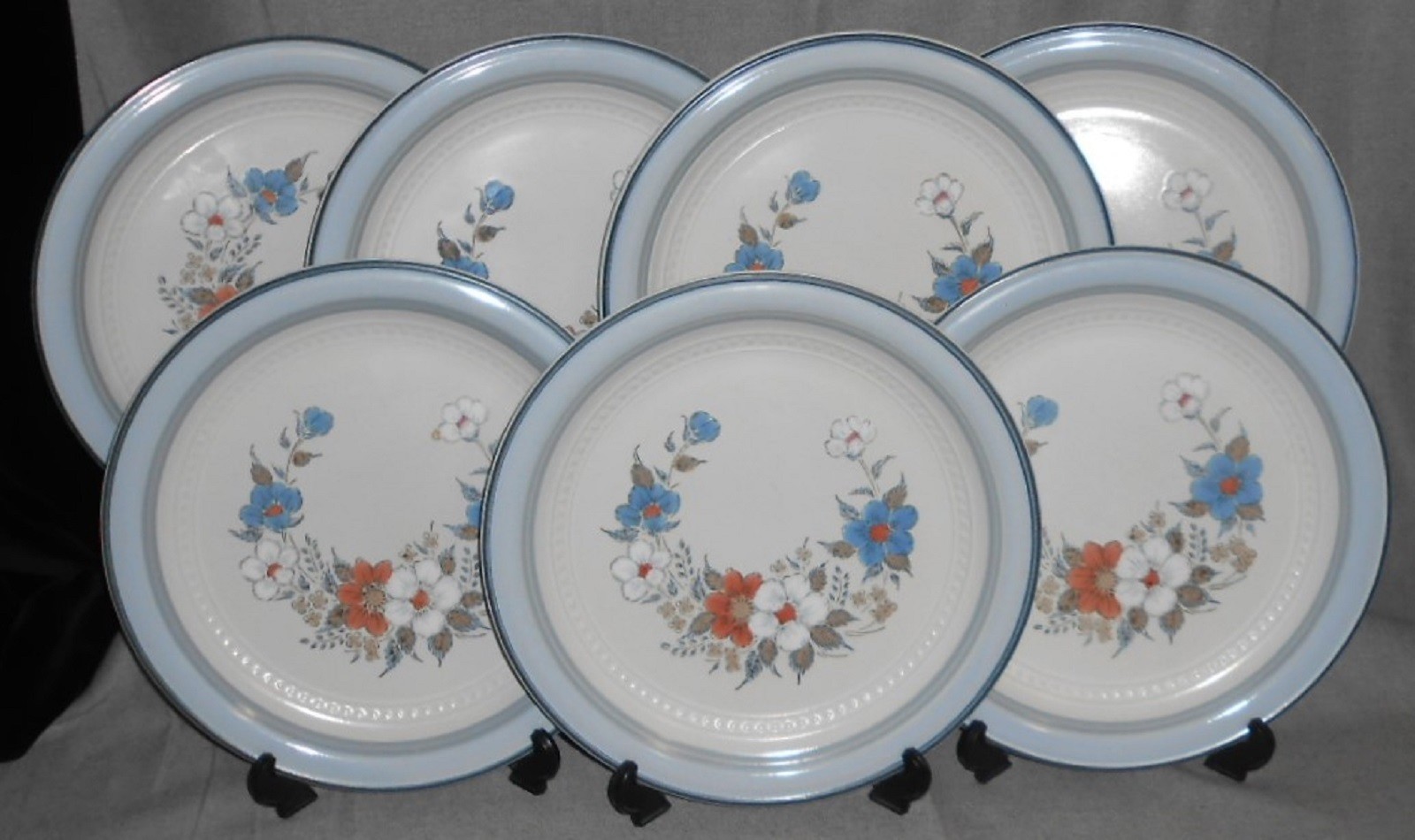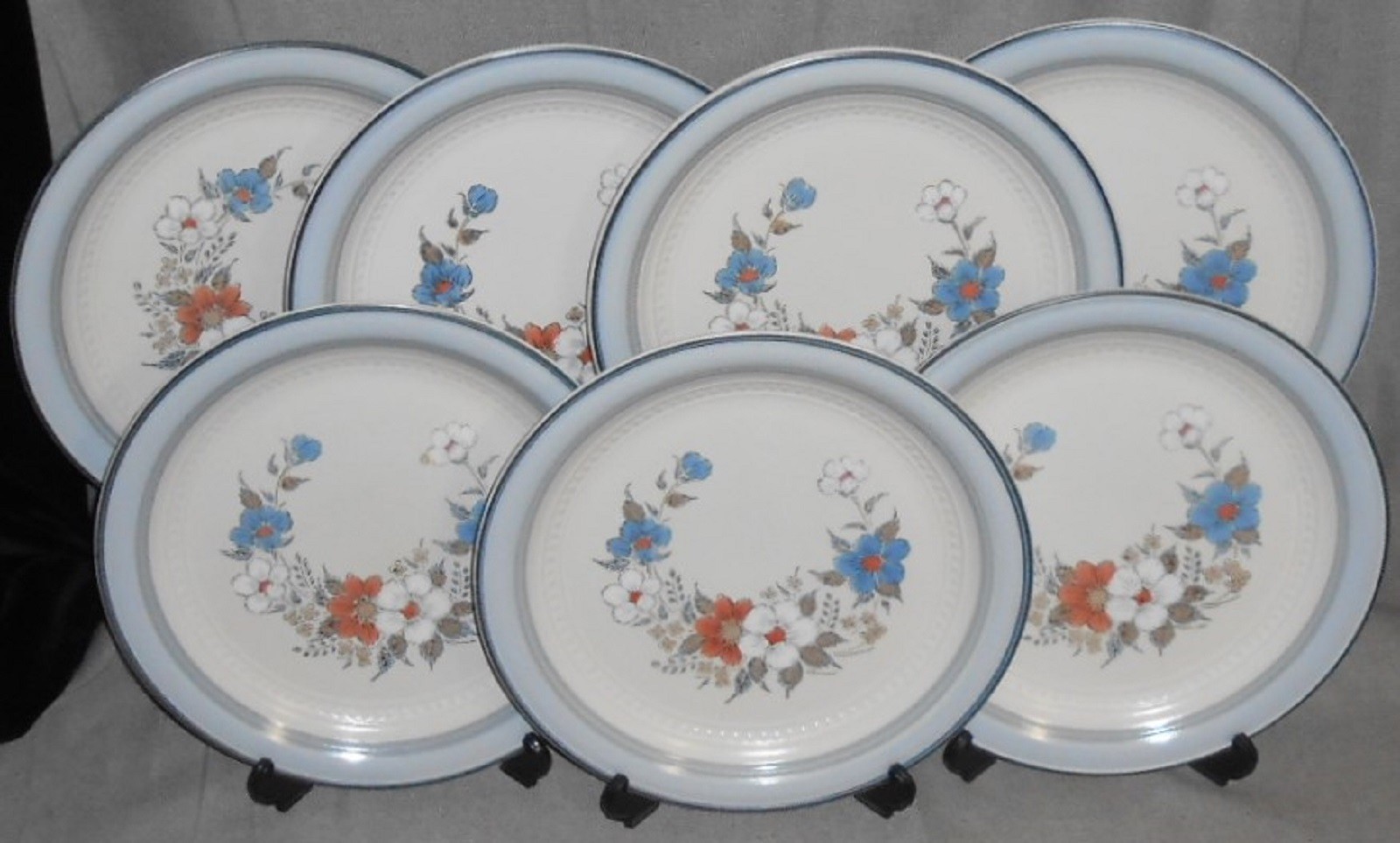This is a very nice pattern that I originally thought was Denby as it goes well with a number of Denby Patterns but it is from Johann Haviland for Crowning Fashion Dinnerware in Japan and the Pattern is appropriately entitled Blue Bouquet. Great colors and design and all seven of the 10 3/4" Dinner Plates are in good pre-owned condition with no chips or cracks.