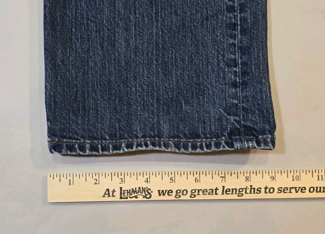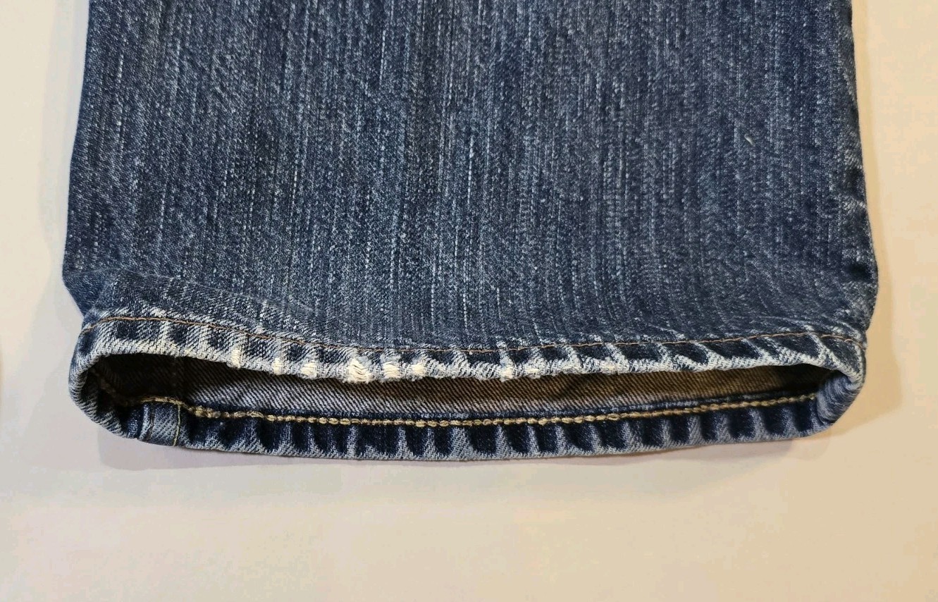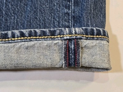 Please see photos showing cuff wear. The Banana Republic Selvedge Jeans for men in size 35x30 offer a straight fit and medium wash in blue denim. These jeans feature a classic 5-pocket design with a mid-rise and zip/button closure. The fabric is 100% cotton denim, and they are machine washable for easy care. The solid pattern and hipster/casual style make them a versatile option for all seasons, suitable for various occasions from city outings to casual wear. Ideal for the modern man looking for a blend of comfort and style in their wardrobe.