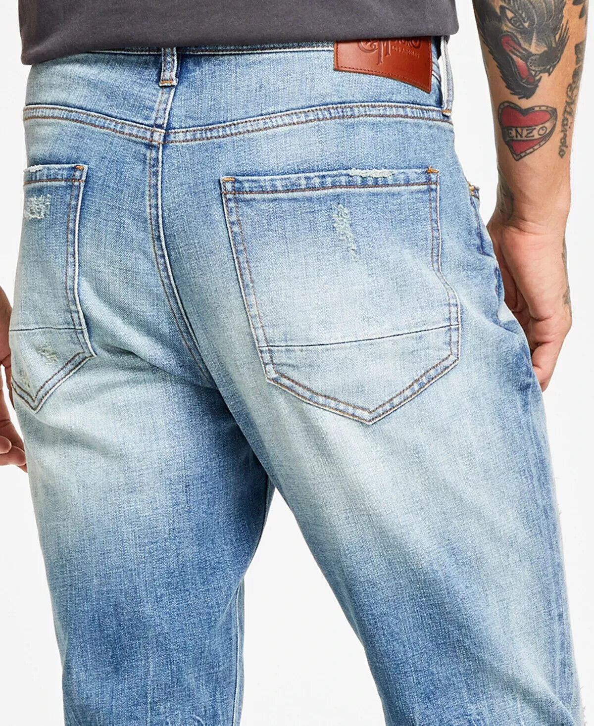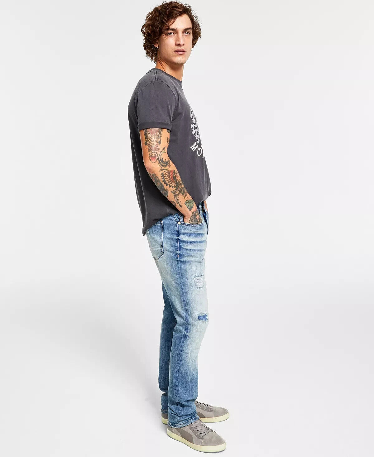 Heroes Motors Men's Slim-Straight Fit Distressed Jeans in Henderson Blue-32/32