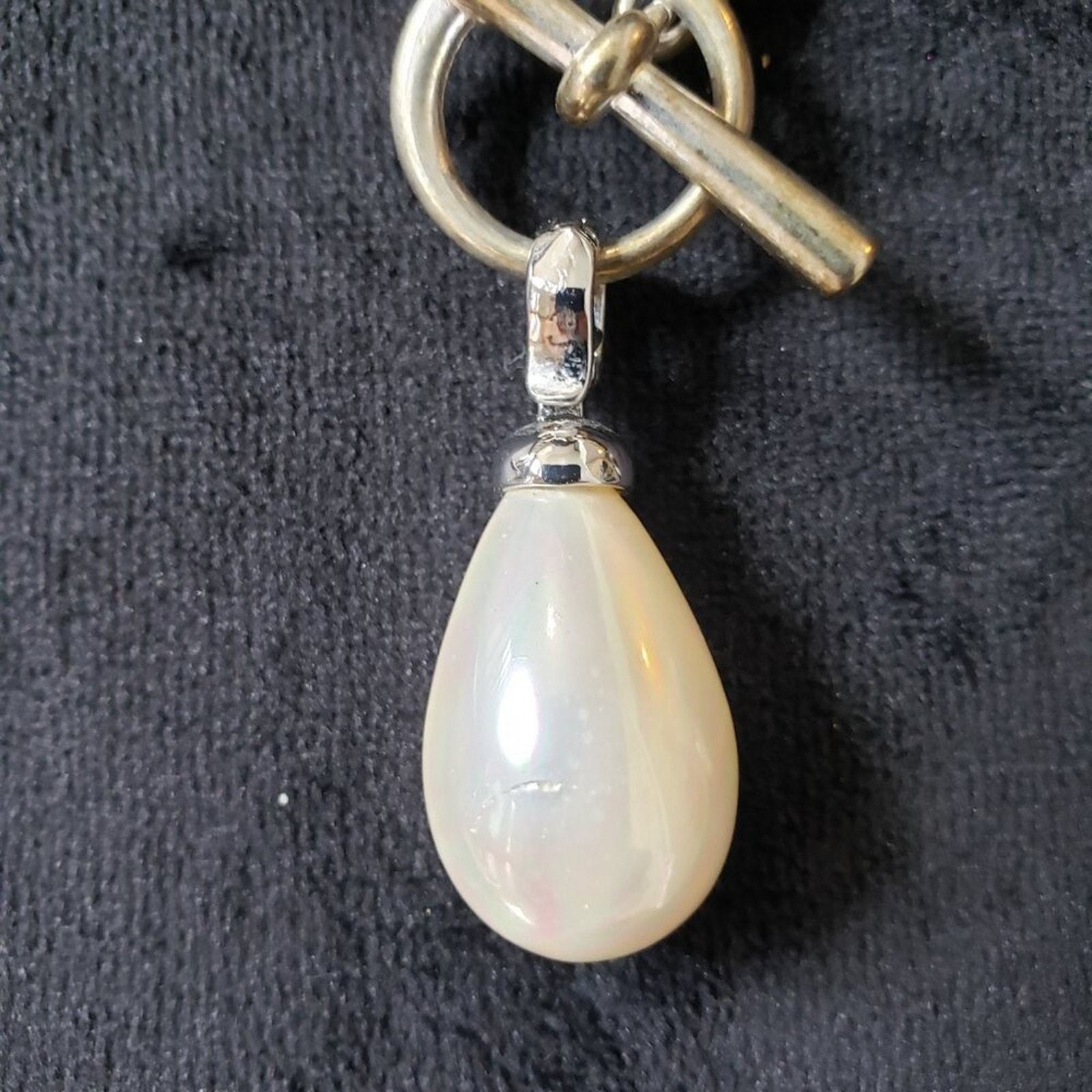 Womens Baroque Drop Pearl Shell Leather Cord Necklace with Round Toggle Clasps