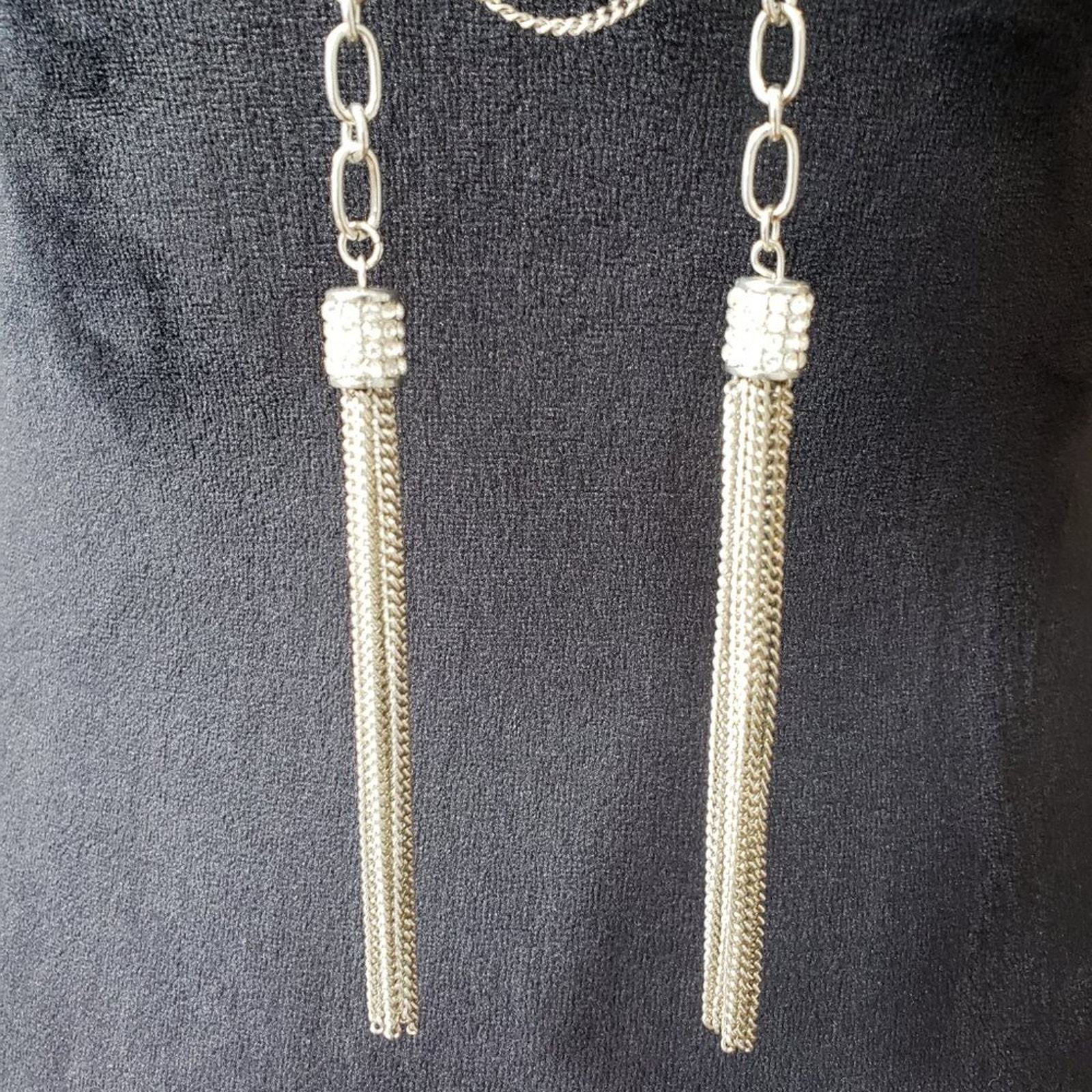 JLO Women's Jewelry Two Tone Chain Drapes & Tassel Long Necklace Lobster Clasp added to cart.