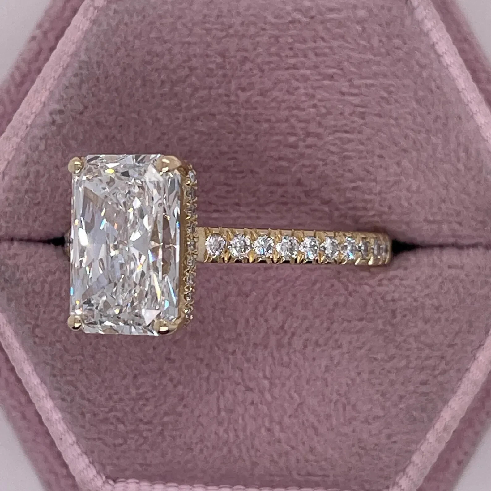 ? 3.25 Carat Lab Grown Radiant Cut Diamond Ring | 14K Yellow Gold | E Color VVS2 Clarity | IGI Certified | Free Shipping