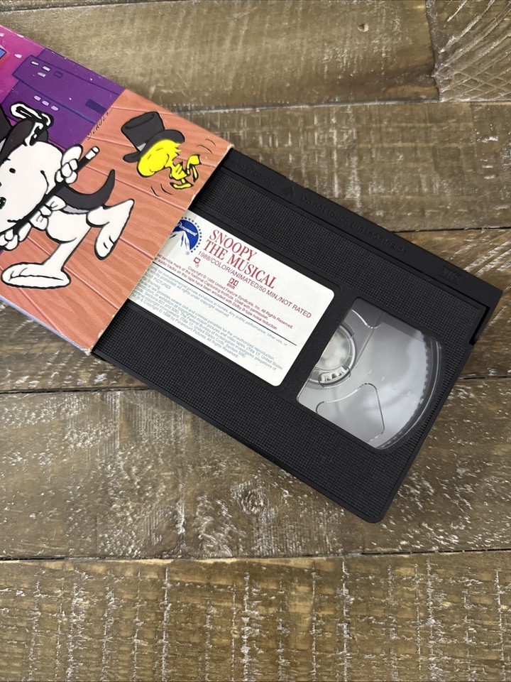 Whether you're revisiting cherished memories or introducing a new generation to the magic of Peanuts, this VHS tape brings a quaint nostalgia to your movie nights. Explore the delightful narrative and catchy tunes that have made "Snoopy The Musical" a beloved treasure in the realms of animation and musicals alike.