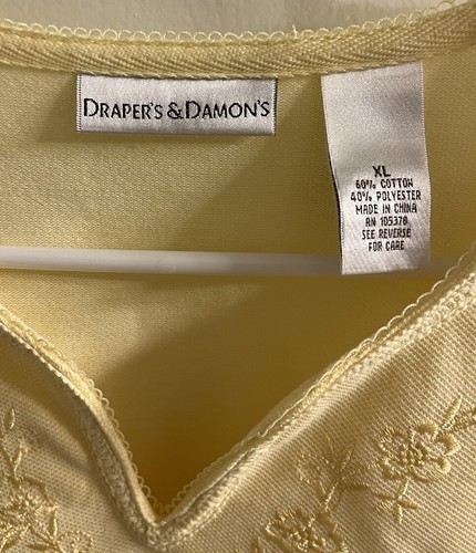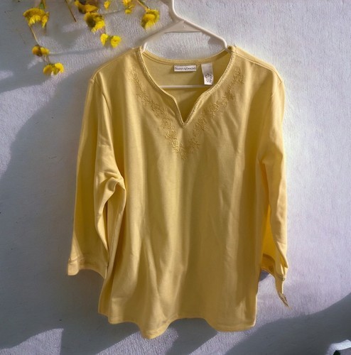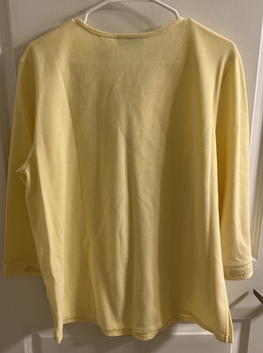Drapers & Damons Size XL Light Lemon Yellow Knit Top Embroidery Flowers Blouse