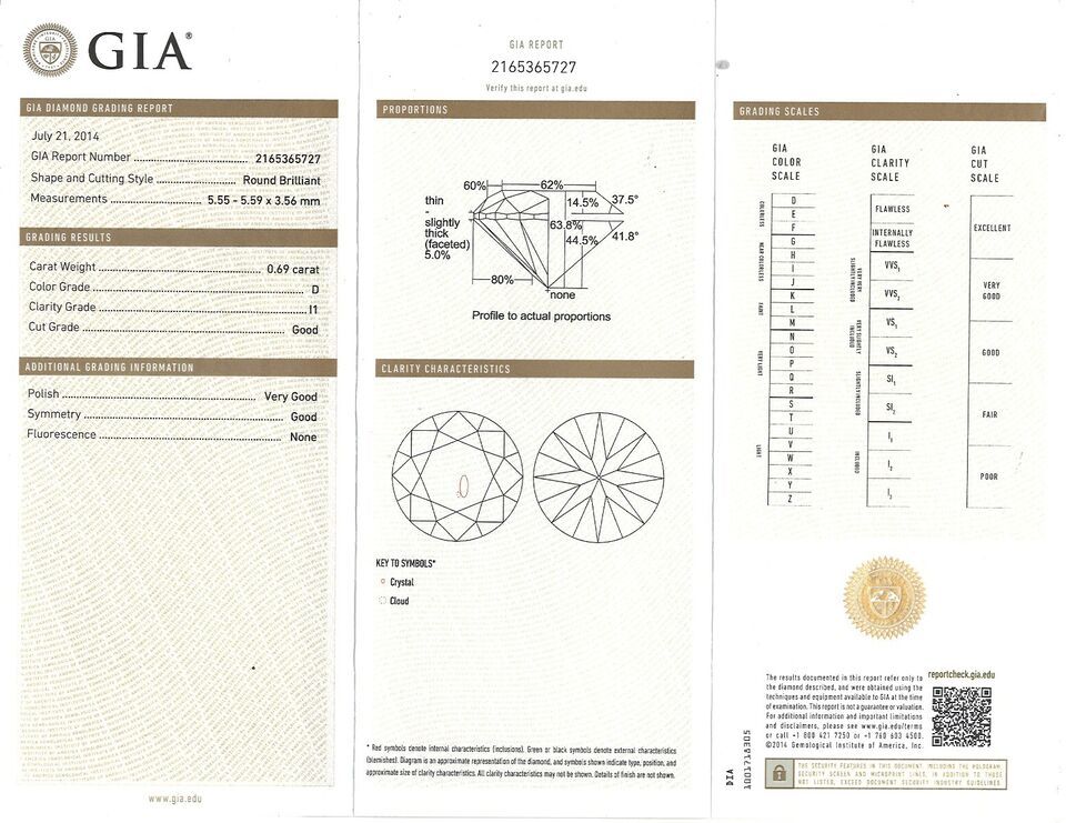Authenticity Guarantee 14k Rose Gold GIA 0.69 Carat Solitaire D Color Round ...