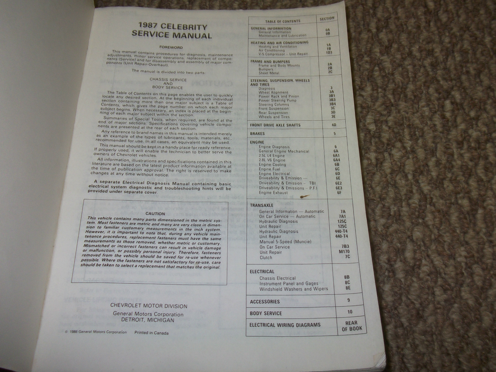1987 Chevrolet Chevy Célébrité Service and similar items