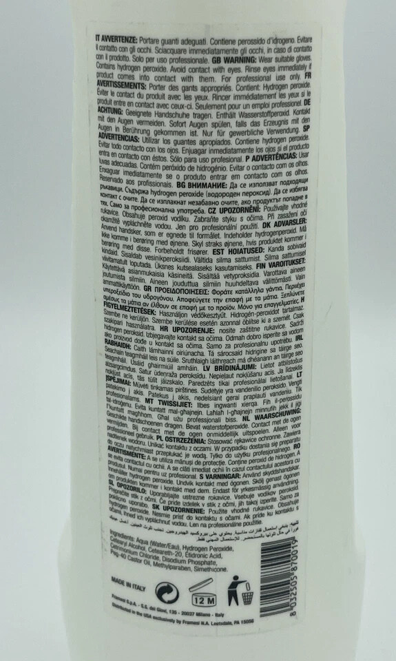Framcolor Extra Activator is a specialized hair coloring booster designed to enhance the pigmentation process. It is used in conjunction with Framcolor hair dyes to increase color intensity, improve coverage, and ensure long-lasting, vibrant results. The activator works by activating the dye's molecules more effectively, providing faster processing times and more pronounced color outcomes. Suitable for professional use, it helps achieve precise, consistent, and stunning hair color transformations.