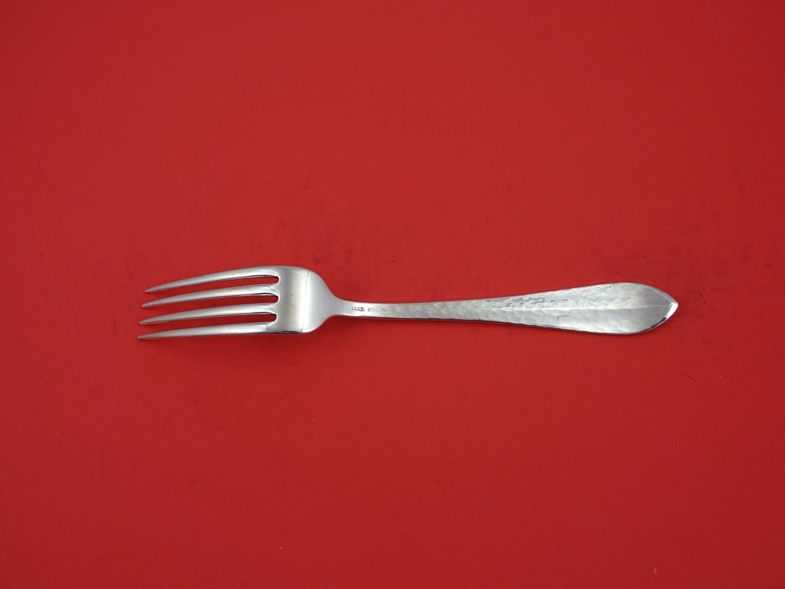 Sterling silver Dinner Fork 7 7/8" in the pattern Pointed Antique Hammered by Dominick and Haff. It is not monogrammed and is in excellent condition.
