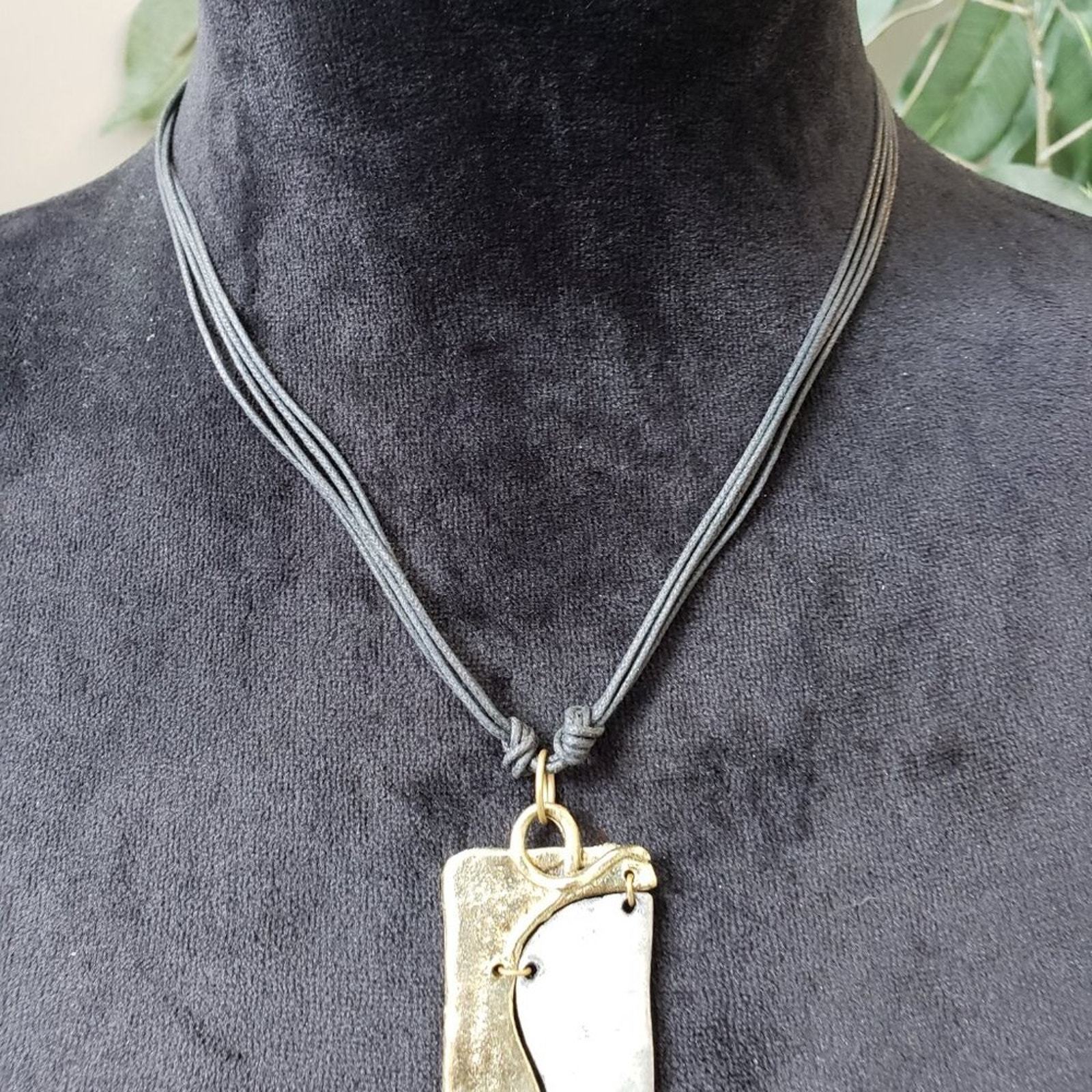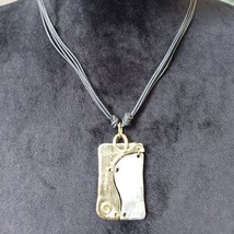 Women's Black Leather Cord Silver & Bronze Pendant Necklace with Lobster Clasp
