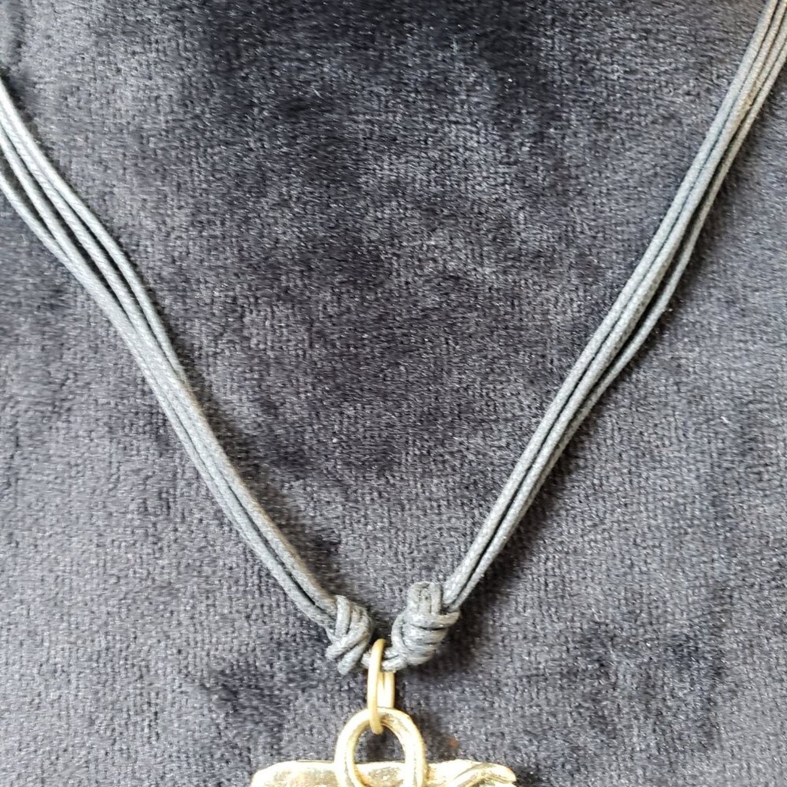 Women's Black Leather Cord Silver Bronze Pendant Necklace with Lobster Clasp.