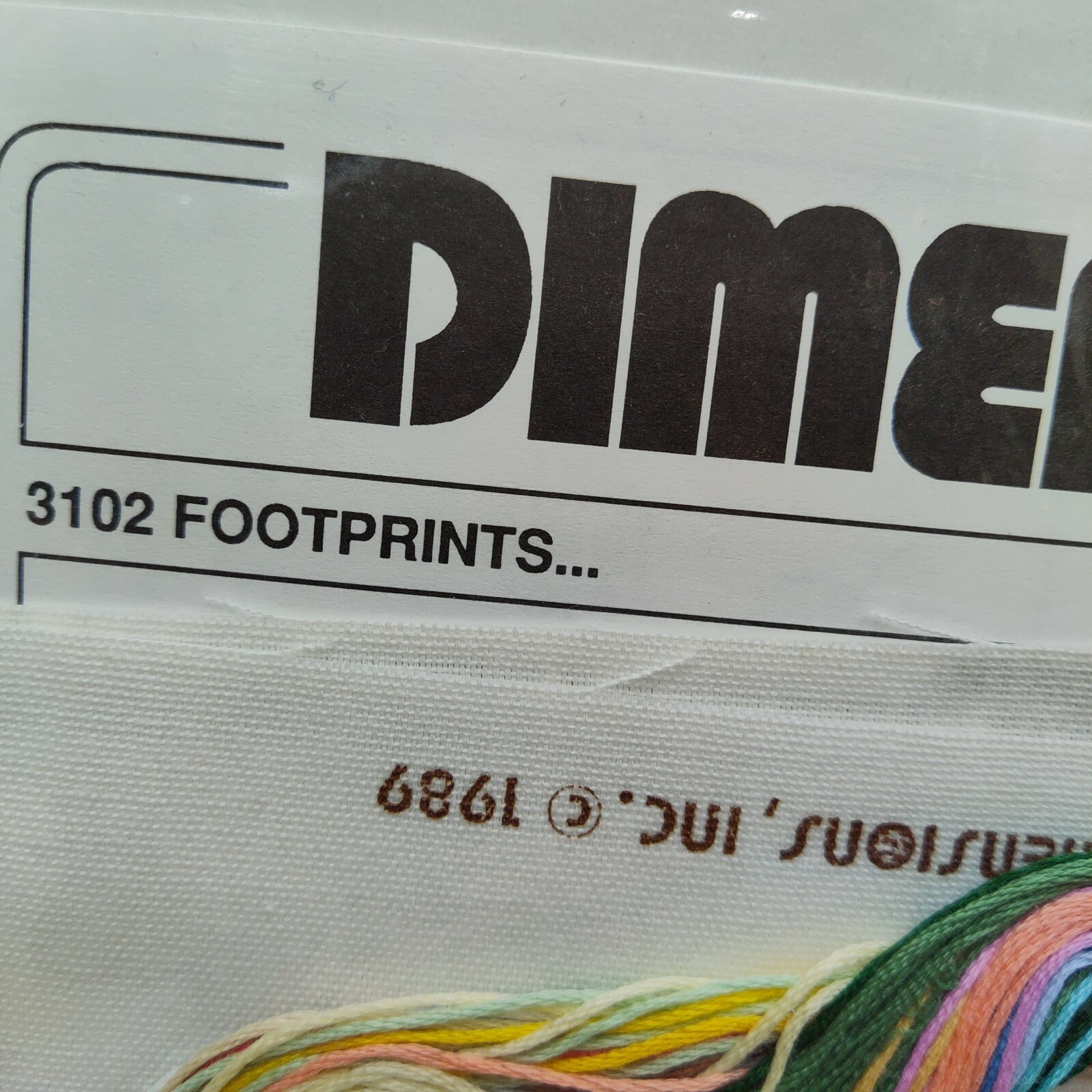 Vtg Dimensions Stamped Cross Stitch Kit Footprints Beach Sea Comfort Saying 1989