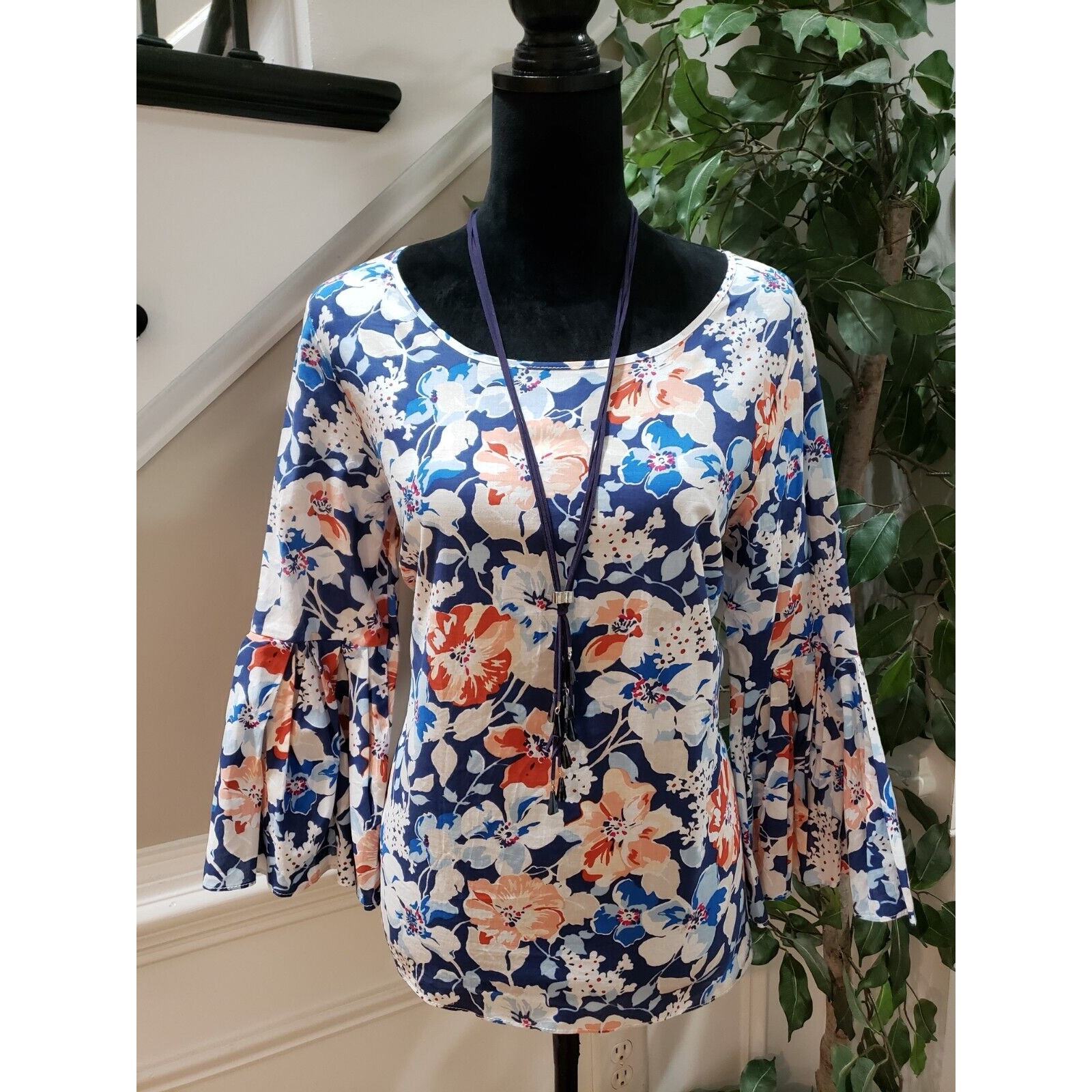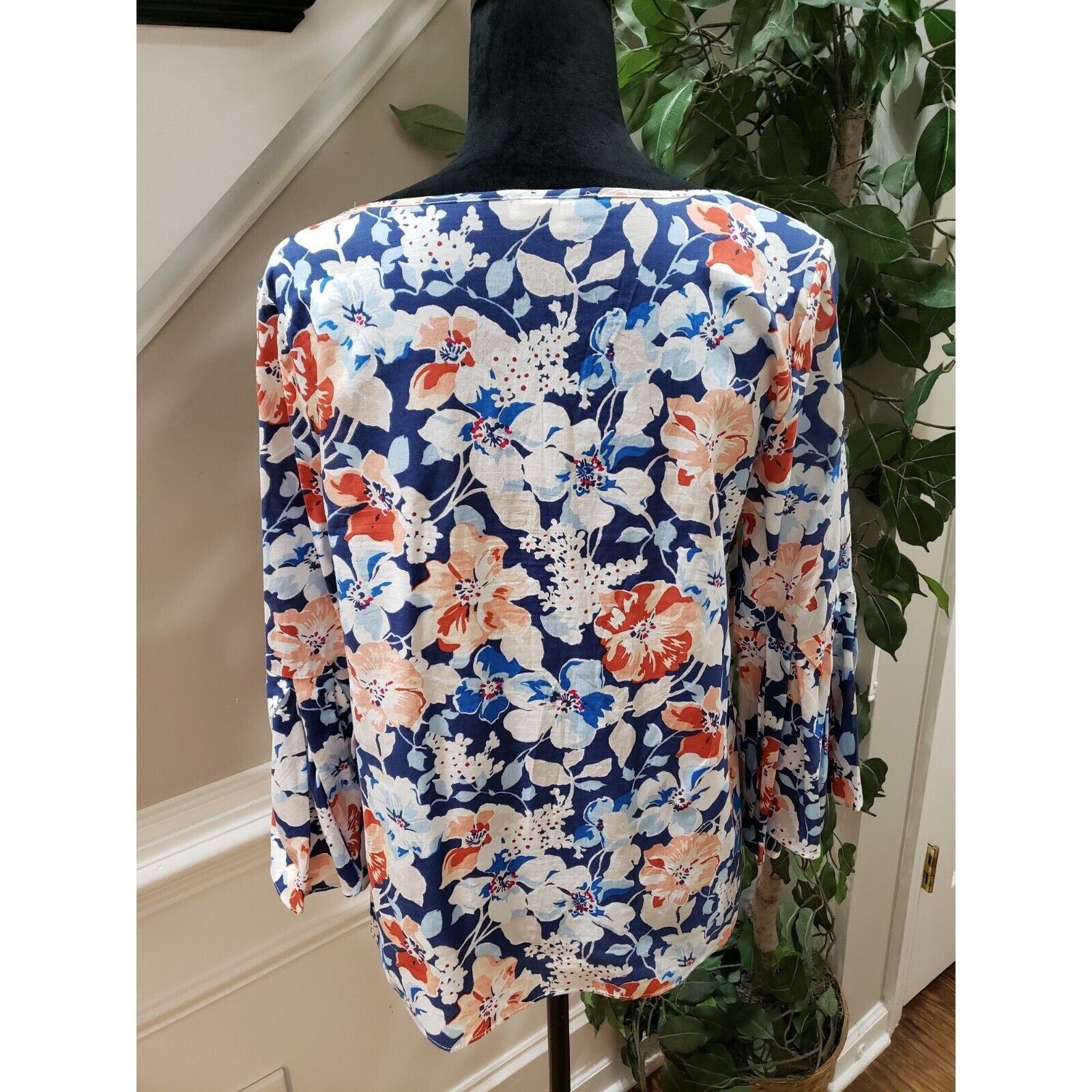 Jane and Delancey Women's Multi Floral Round Neck Long Sleeve Top Blouse Large.