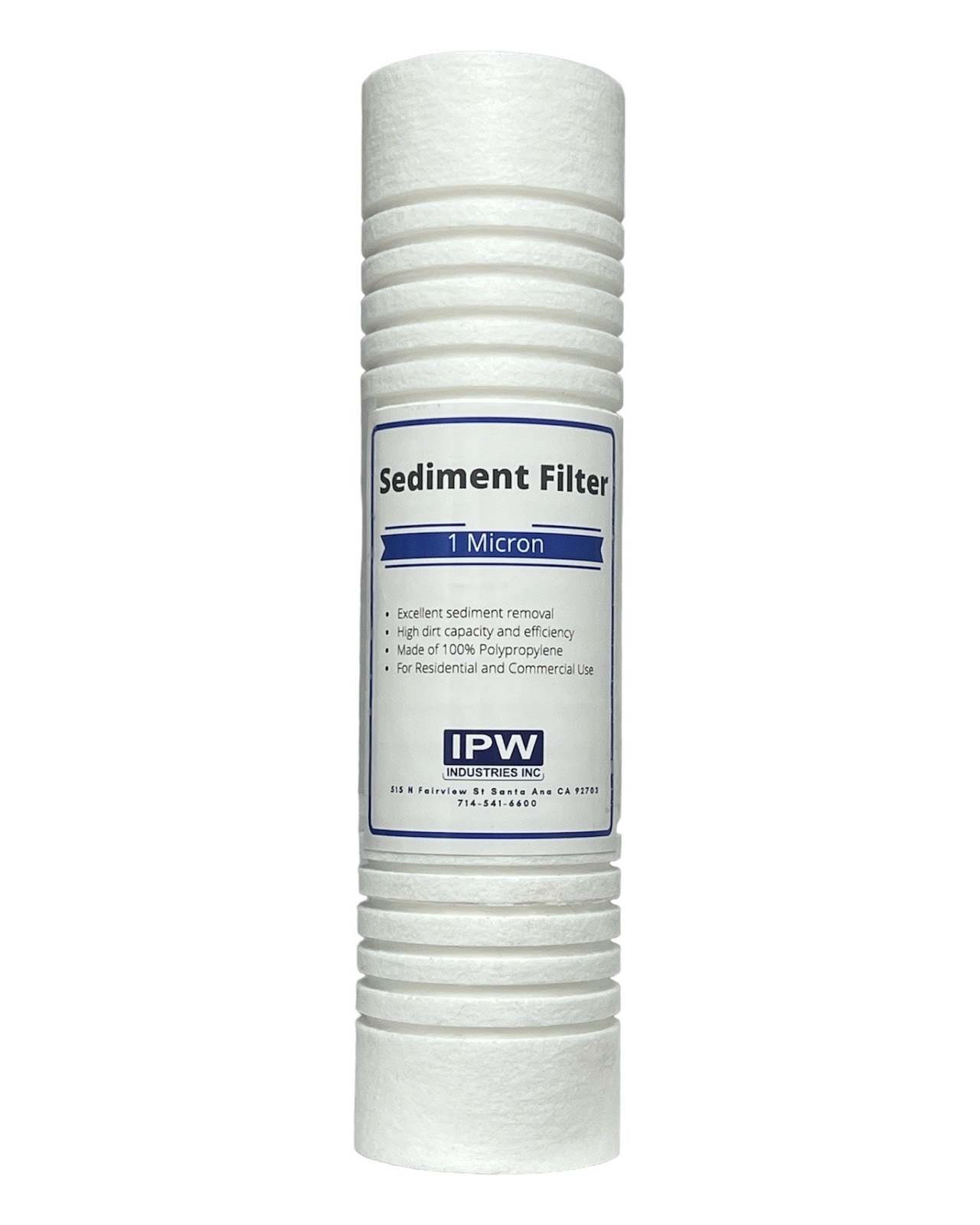 IPW Industries Inc Grooved Melt Blown Sediment water filter cartridges are made of fine melted polypropylene, which is melt blown and spun in a cylinder-like form. The grooved surface allows for increased surface area to improve filtration and filter life.The main function of grooved sediment filter is to remove large and fine particles from a drinking water, such as sand, dirt, silt, and rust particles. These filters have graded density layers, meaning the outer layers are more porous, catching larger particles, while the inner layers are a finer micron, catching smaller particles. Each filter cartridge is individually shrink-wrapped.