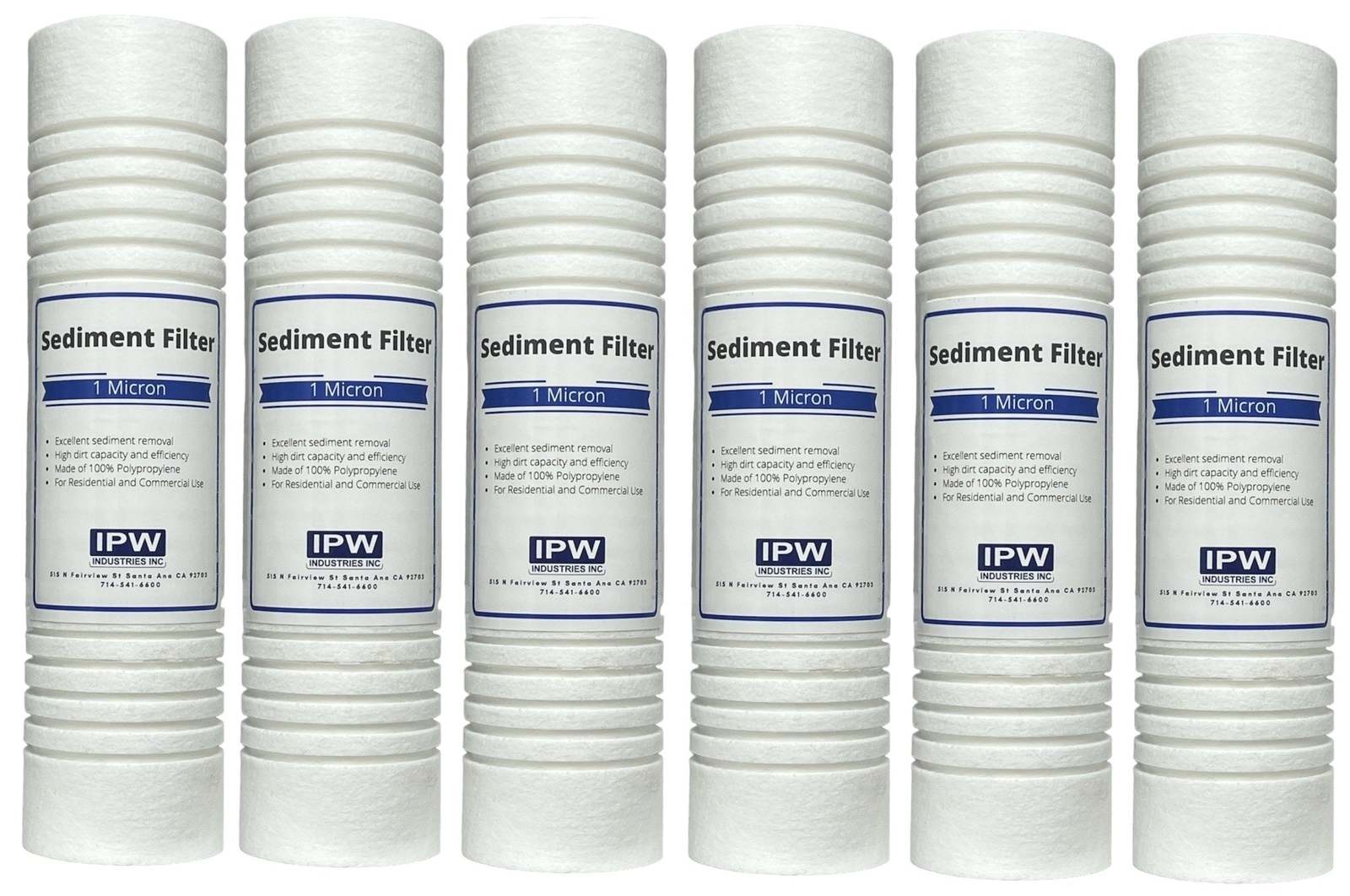 10 inches x 2.5 inches - 6 Pack Of 1 Micron Grooved Gradient Density, Multi-Layered, Melt Blown Sediment Filter Cartridges. Universal water filter replacement fits any standard 10 inch RO and Whole House systems.