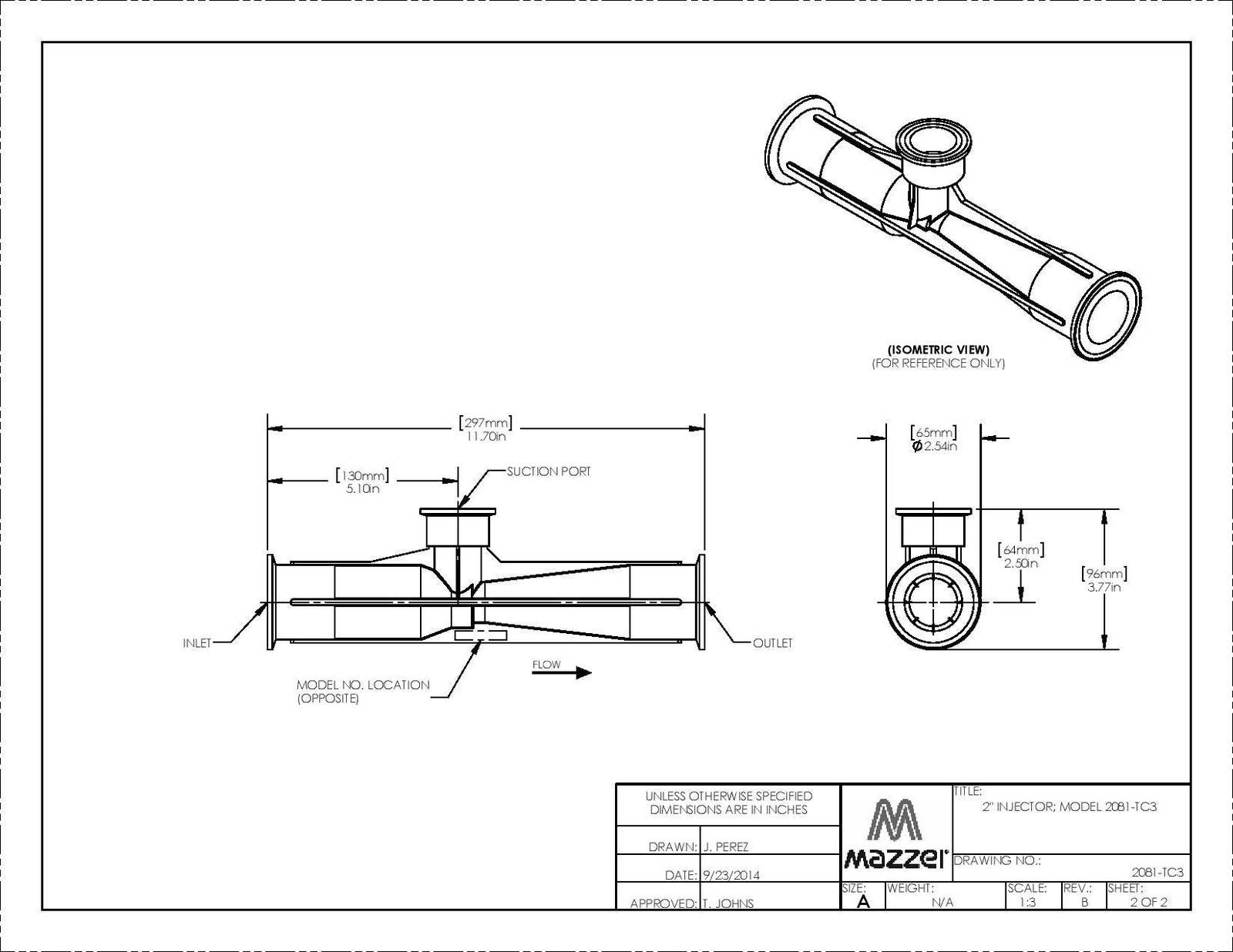 Mazzei - 2083 Series - 2.0" Male NPT Inlet/Outlet Connections (1.25" Male NPT Th
