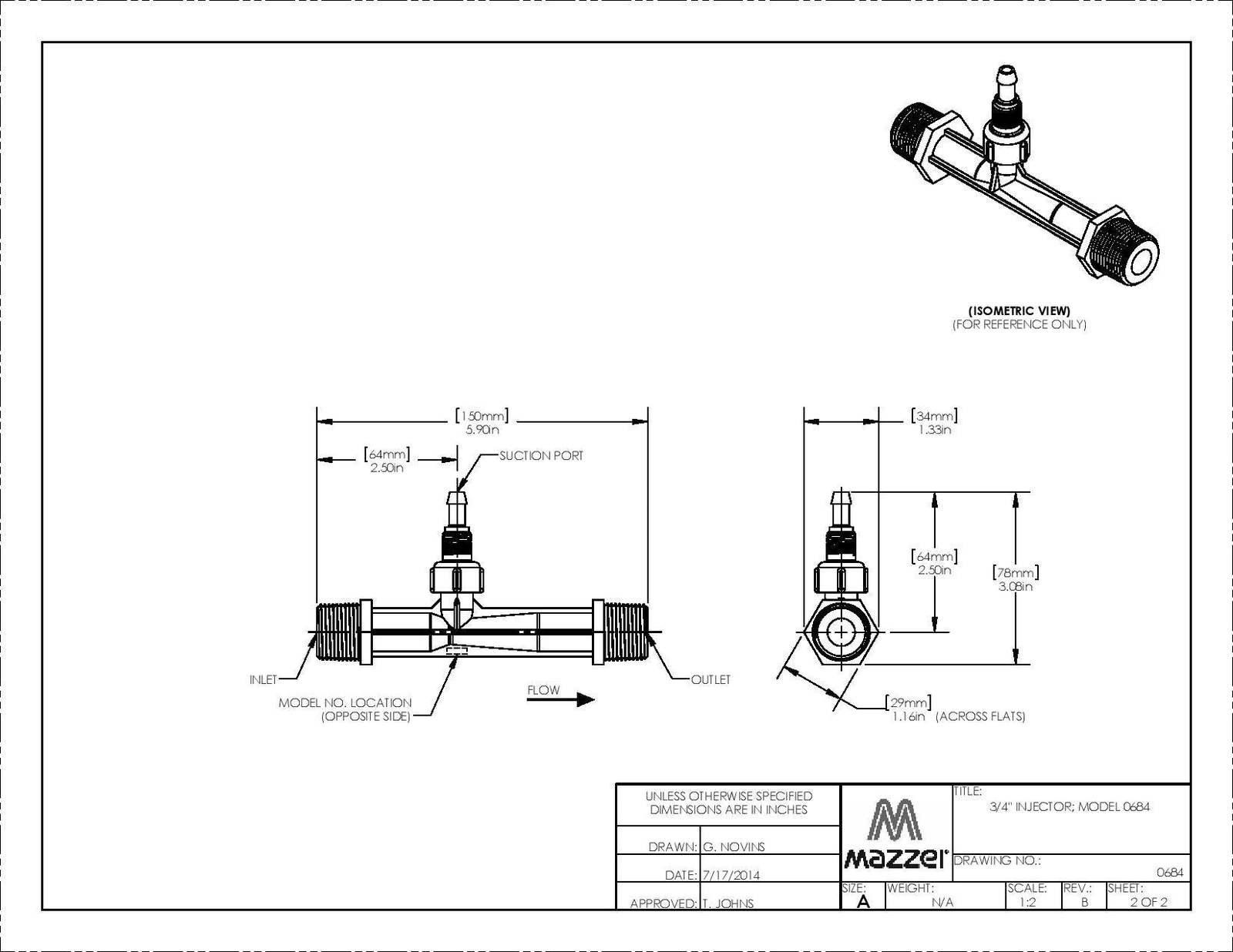 Mazzei - ISO 684 Series - 20mm Male BSPT Inlet/Outlet Connections (0.25" Barbed