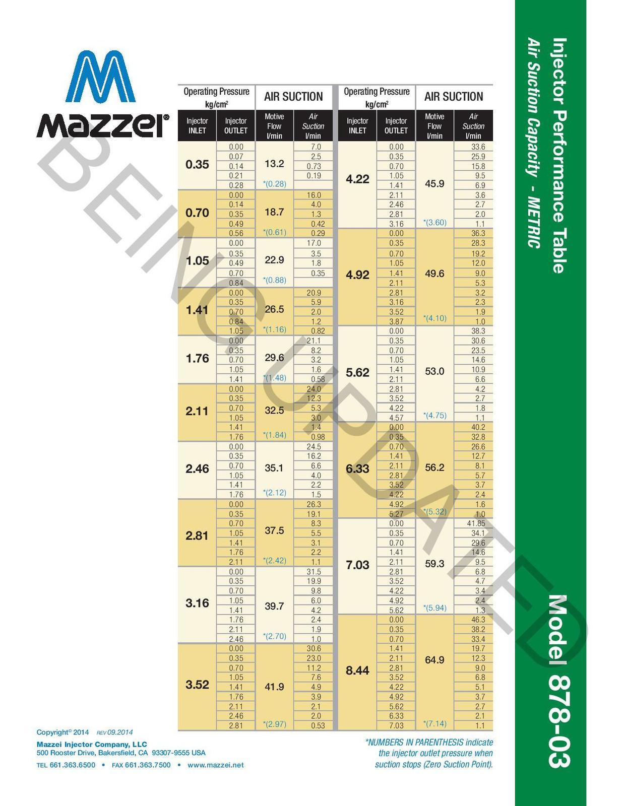 Mazzei venturi injectors operate over a wide range of pressures and require only a minimal pressure differential between the inlet and outlet sides to initiate a vacuum at the suction port. The injectors?? internal mixing vanes create thousands of microbubbles, which greatly increases the surface area of gas (air, oxygen, ozone, etc.) in contact with the liquid. Several microbubbles have a greater surface area than one large bubble of the same volume. Higher surface area facilitates greater solubility.