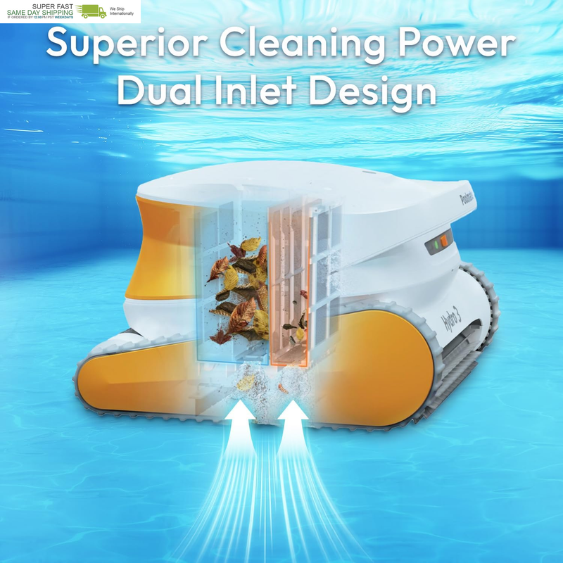 Dual Inlet System for Efficient Cleaning: The innovative dual inlet design enhances water flow across the pool?s bottom, efficiently capturing dirt and debris of all sizes. Even when the main filter chamber is filled with larger debris, the secondary filter chamber ensures uninterrupted wall climbing and thorough waterline cleaning, maintaining optimal performance throughout the cleaning process